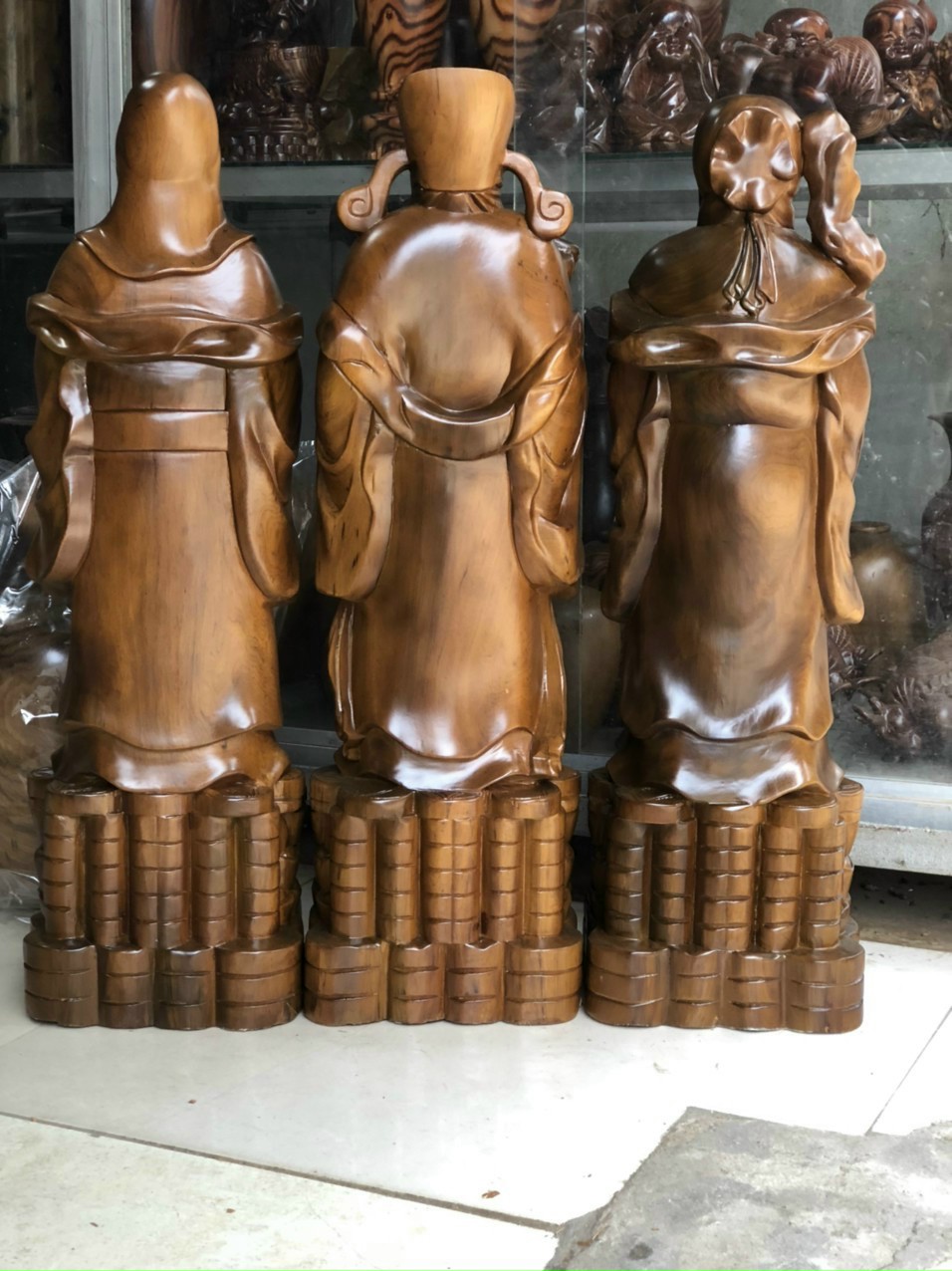 ✨Bộ tam đa phúc lộc thọ bằng gỗ bách xanh kt cao 60×15×18
