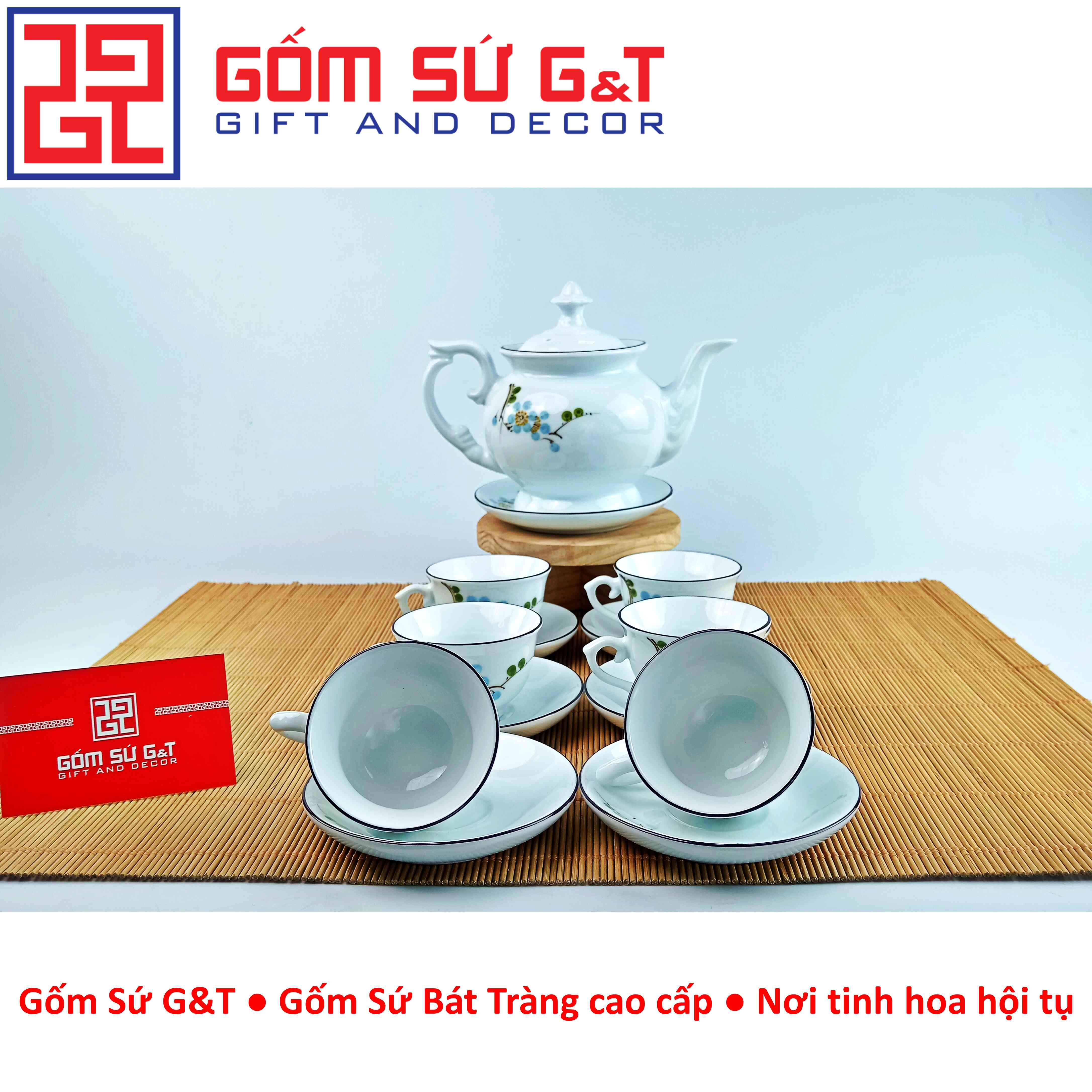 Bộ Trà Cát Tường Vẽ Hoa Đào xanh – Tinh Hoa Gốm Sứ Bát Tràng