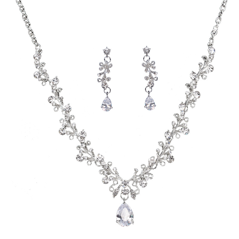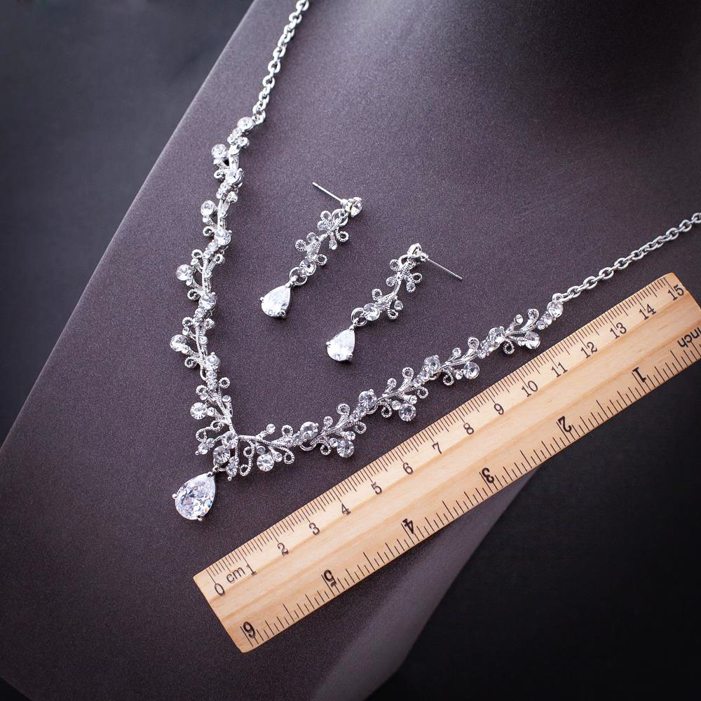 Bộ trang sức gồm 1 vòng cổ và 1 đôi bông tai thiết kế cùng kiểu. Tôn lên vẻ đẹp sang trọng, tao nhã, nổi bật, thu hút mọi ánh nhìn. Thích hợp trang điểm make up cô dâu ngày cưới, chụp ảnh cưới, dạ tiệc dạ hội long trọng.