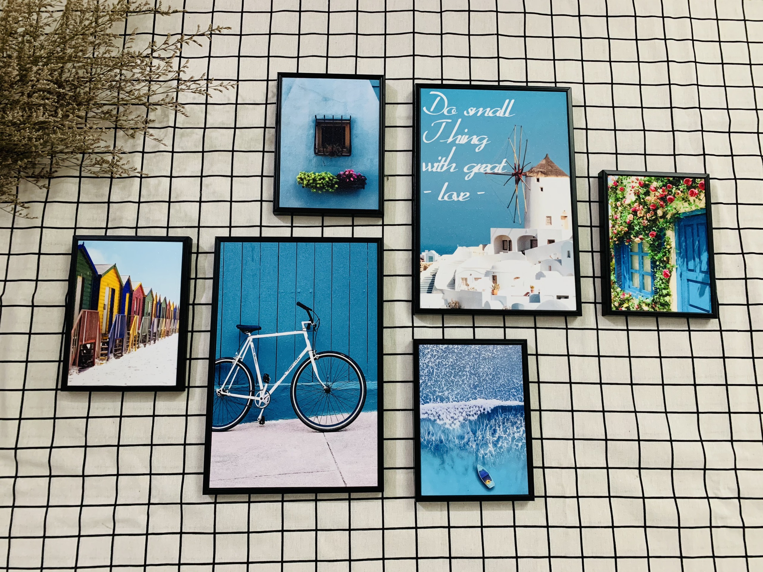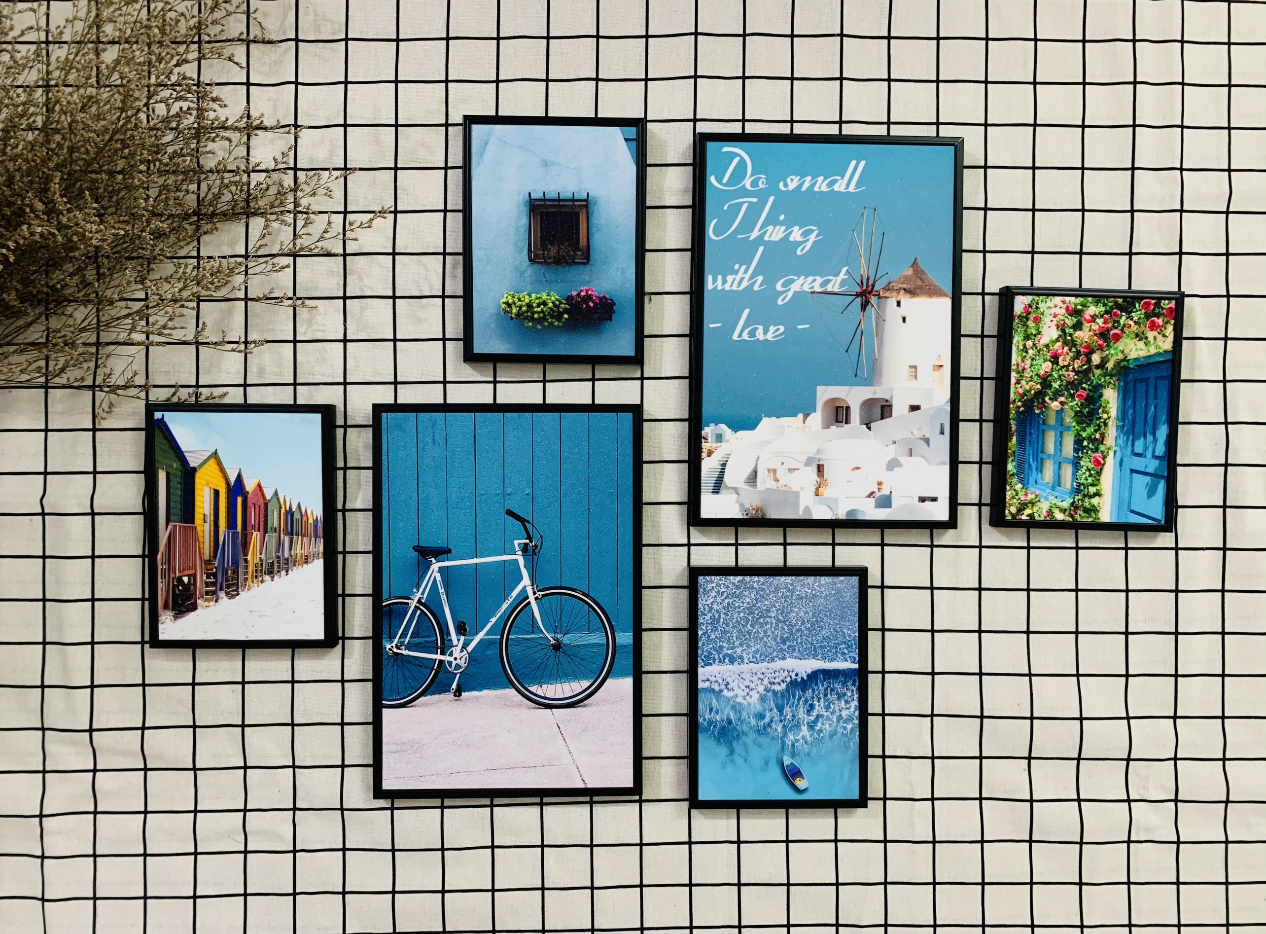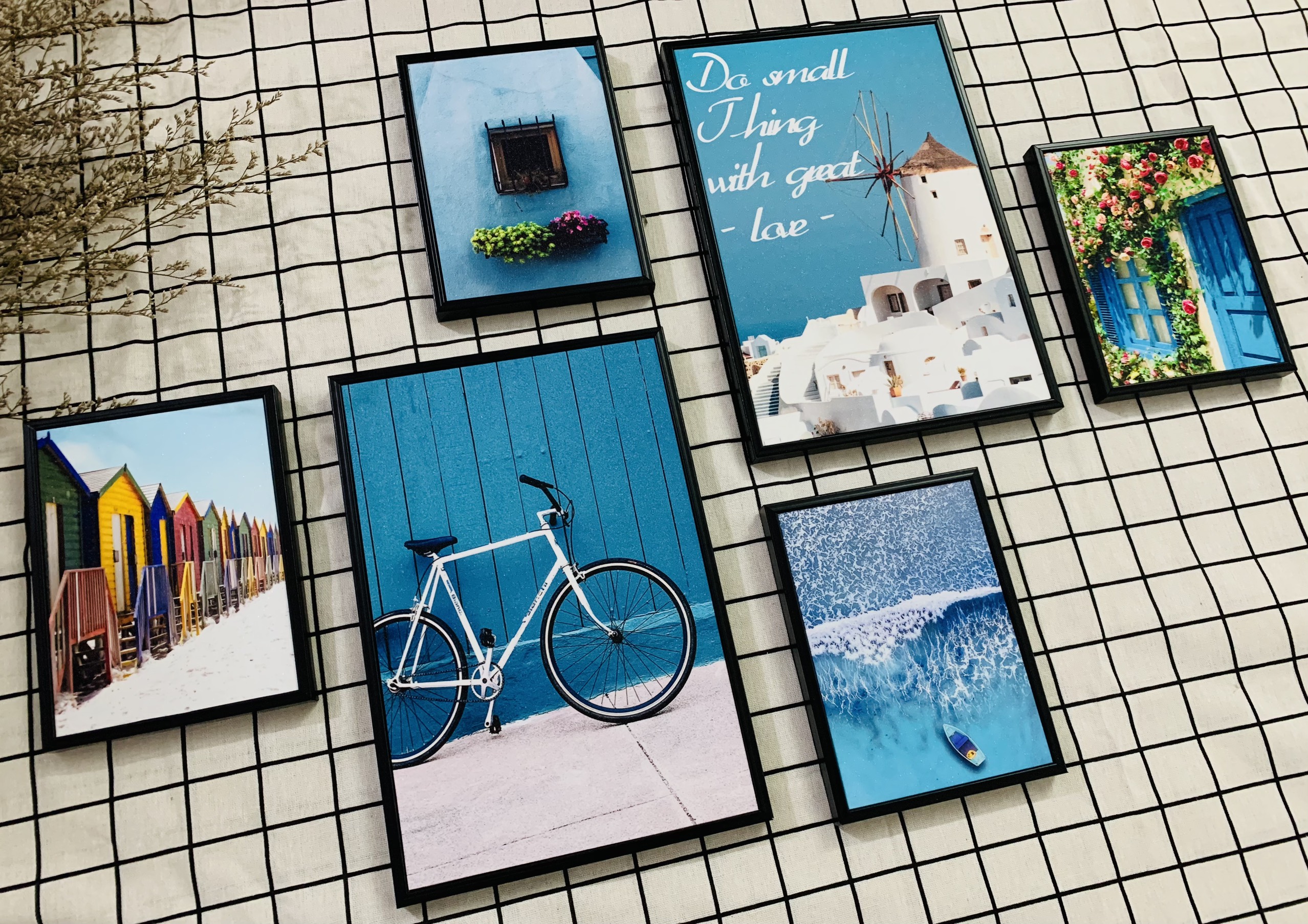 Kích thước : 1 tranh 30x40cm, 3 tranh 20x30cm, 2 tranh 15x20cm Công nghệ in phủ bóng tráng gương trên fomex, khung tranh composite siêu nhẹ Độ bền sản phẩm trên 10 năm Chống nước