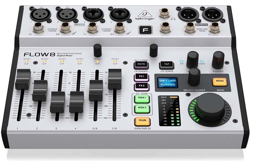 - Ultra-low noise, high headroom digital mixer with wireless remote control - FLOW App for Bluetooth remote control from iOS/Android mobile phones or tablets - 60 mm channel faders and master rotary control with LED