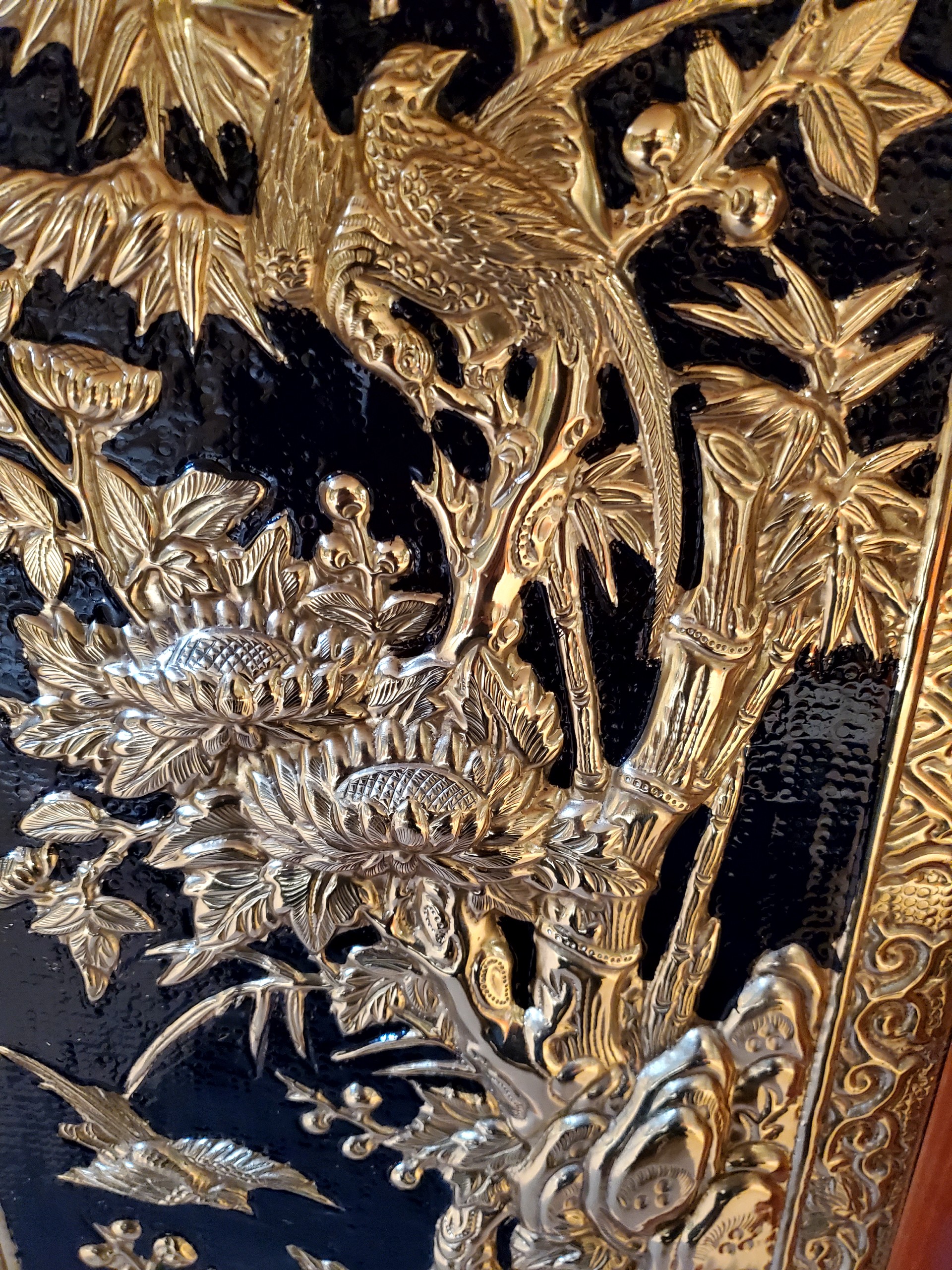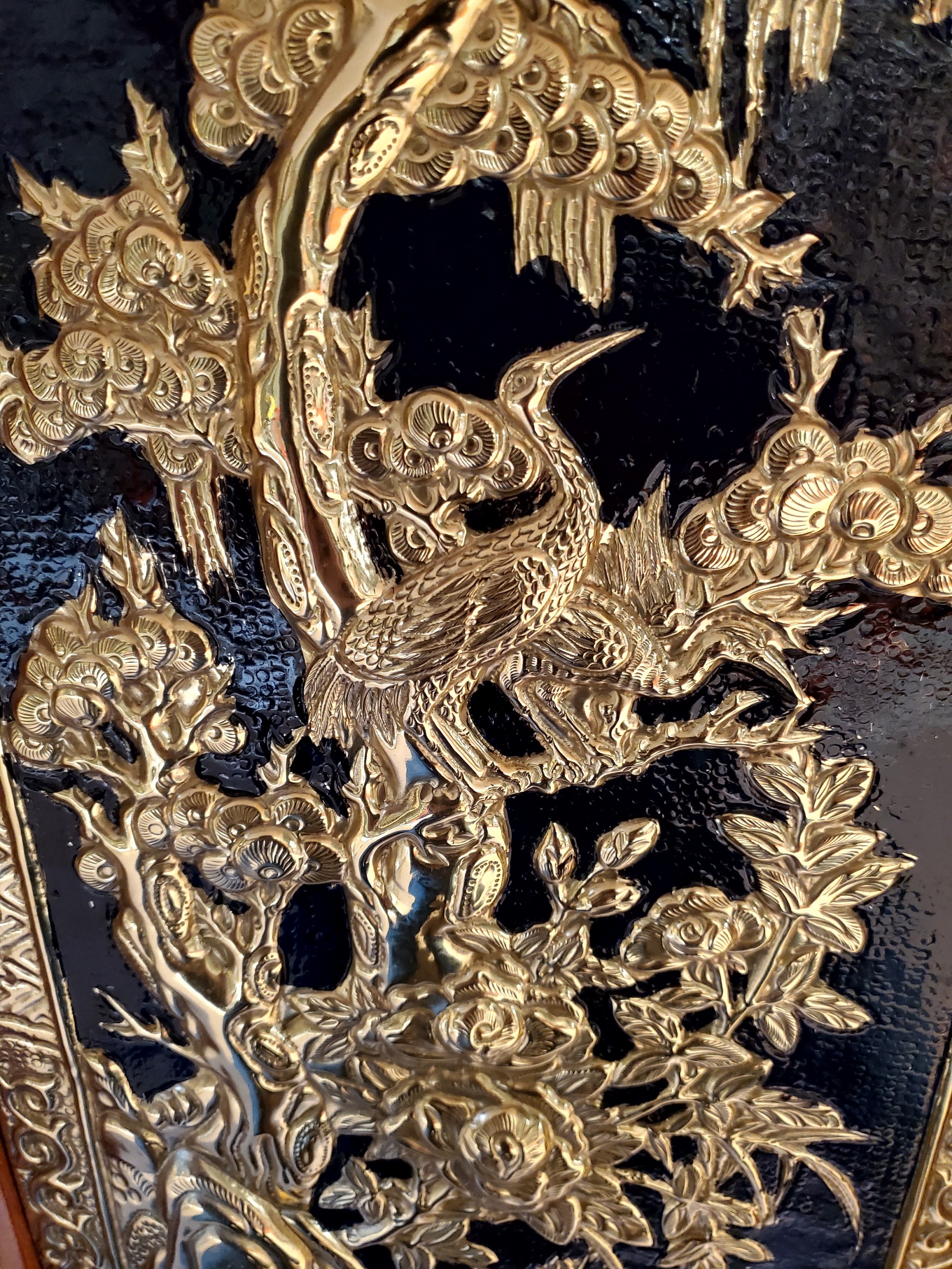 Tranh Tứ Quý Bằng Đồng . Khung Gỗ Nền Vàng Kích Thước 40x1m2 Được Làm Thủ Công Bằng Tay 100%
