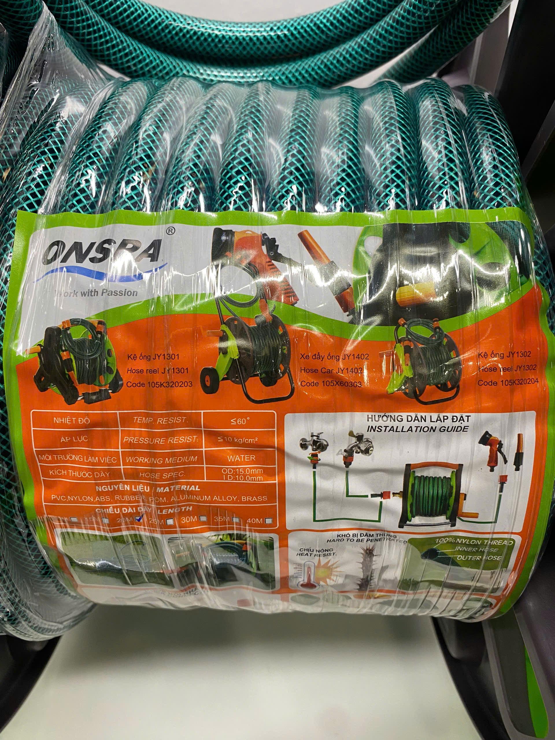 Mua tại TiktokBộ tưới cây, rửa xe Onspa JY1301-3200(có kệ) _20m/cuộn Bộ tưới cây, rửa xe Onspa JY1301-3200 được thiết kế đẹp, chắc chắn tháo lắp dễ dàng chuyên dùng gắn vào nguồn nước để rửa xe hoặc tưới cây cảnh, hoa, rửa sân,… vòi xịt mạnh điều chỉnh được tia nước dễ dàng. Dây nhựa đan thêm lưới chịu được áp lực nước cao, chống tia UV, . Đặc Điểm: