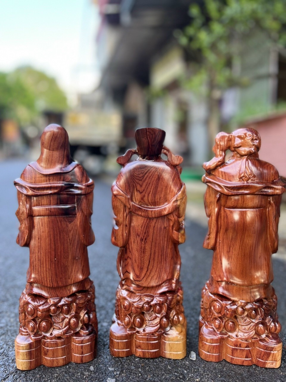 BỘ TAM ĐA PHÚC LỘC THỌ -gỗ cẩm vàng-kt cao 2mđk60-hàng đục tay - nguyên khối