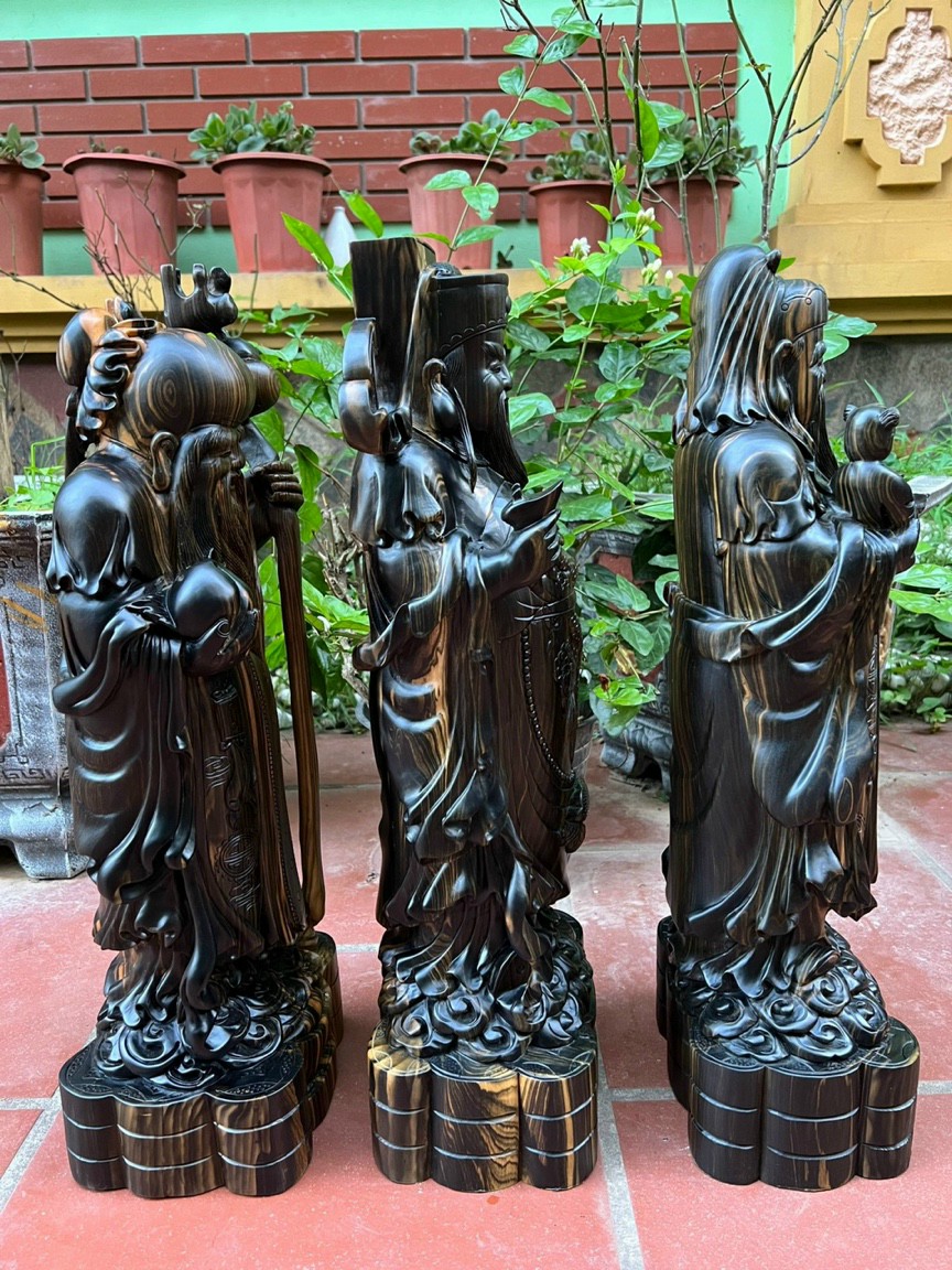 Tượng Tam Đa Phúc-Lộc-Thọ. Gỗ Mun Hoa. Cao 30-60cm. #dothocungbanggo #tuonggoquy #tuonggodep