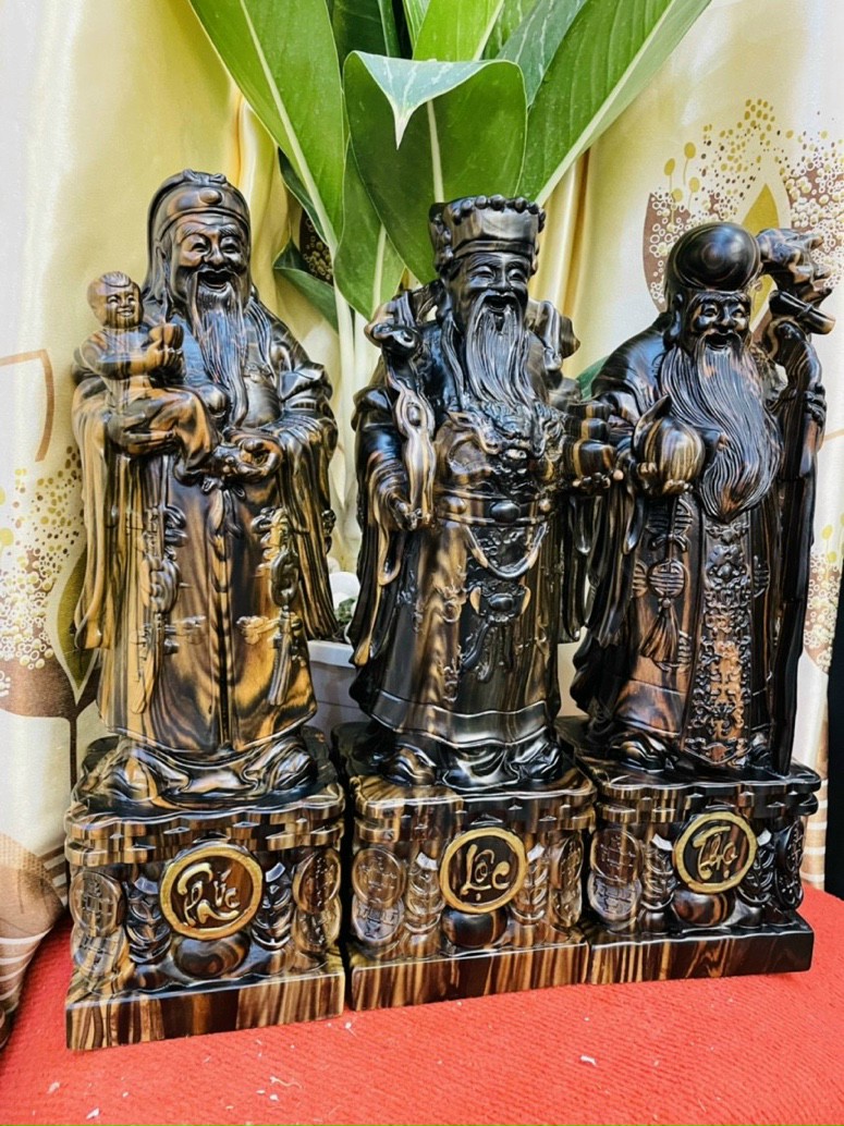 Tượng Tam Đa Phúc-Lộc-Thọ. Gỗ Mun Hoa. Cao 30-60cm. #dothocungbanggo #tuonggoquy #tuonggodep