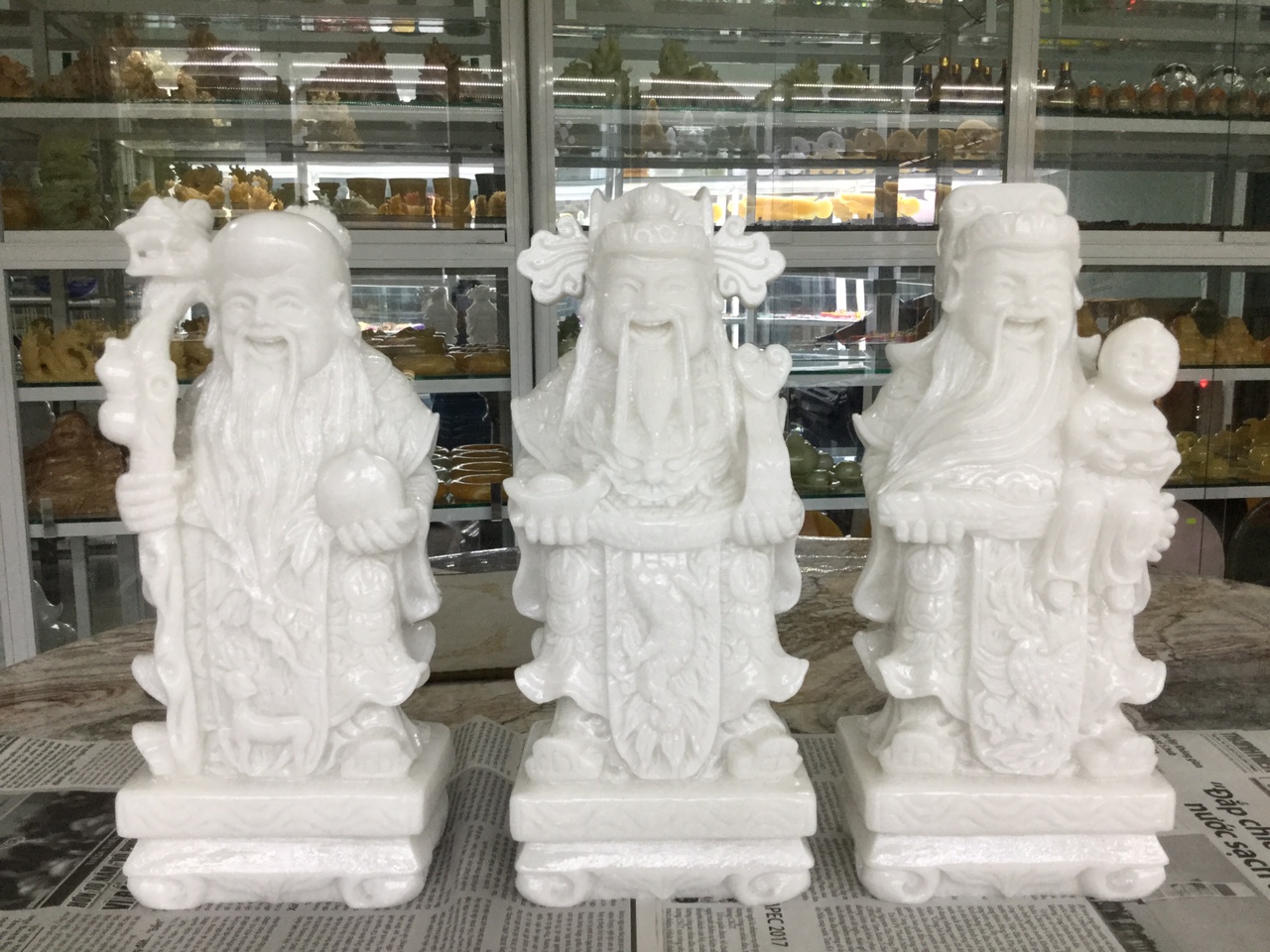 ✨Bộ tượng Tam Đa Phúc Lộc Thọ đá cẩm thạch trắng - Cao 30cm