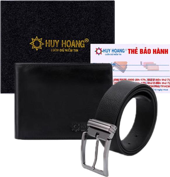 ✨Bộ Ví & Thắt Lưng Nam Đầu Kim Huy Hoàng HT2114-HT4108 (23 x 11,5 cm) - Đen