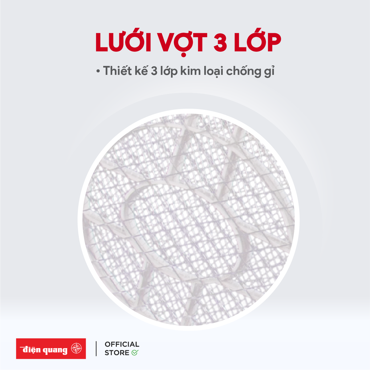 - Đặc biệt, vợt muỗi Điện Quang có đèn LED và đèn báo có điện thông minh. Cùng với công tắc mở điện linh hoạt trên thân vợt giúp người dùng thao tác dễ dàng khi bật hoặc tắt.