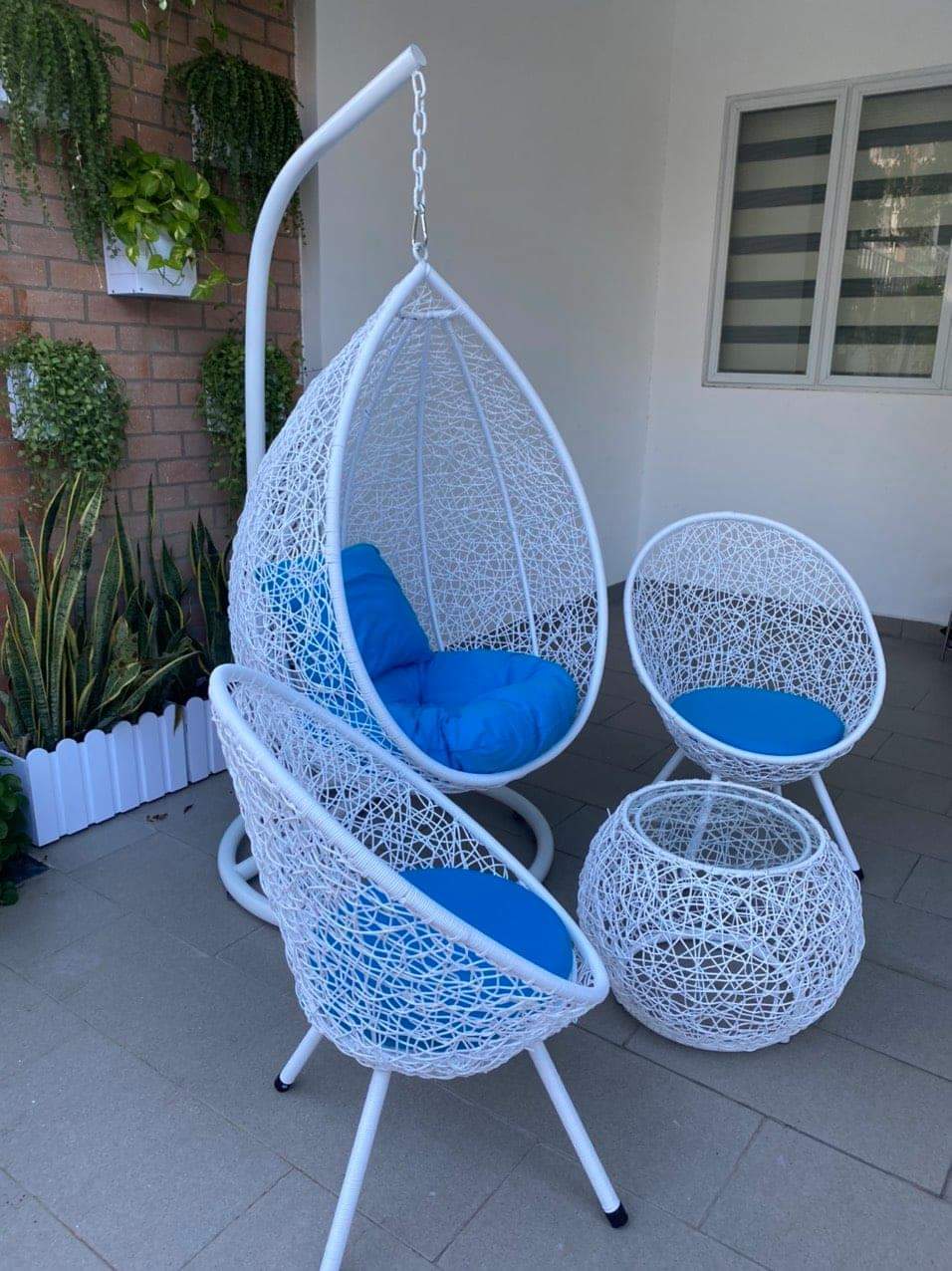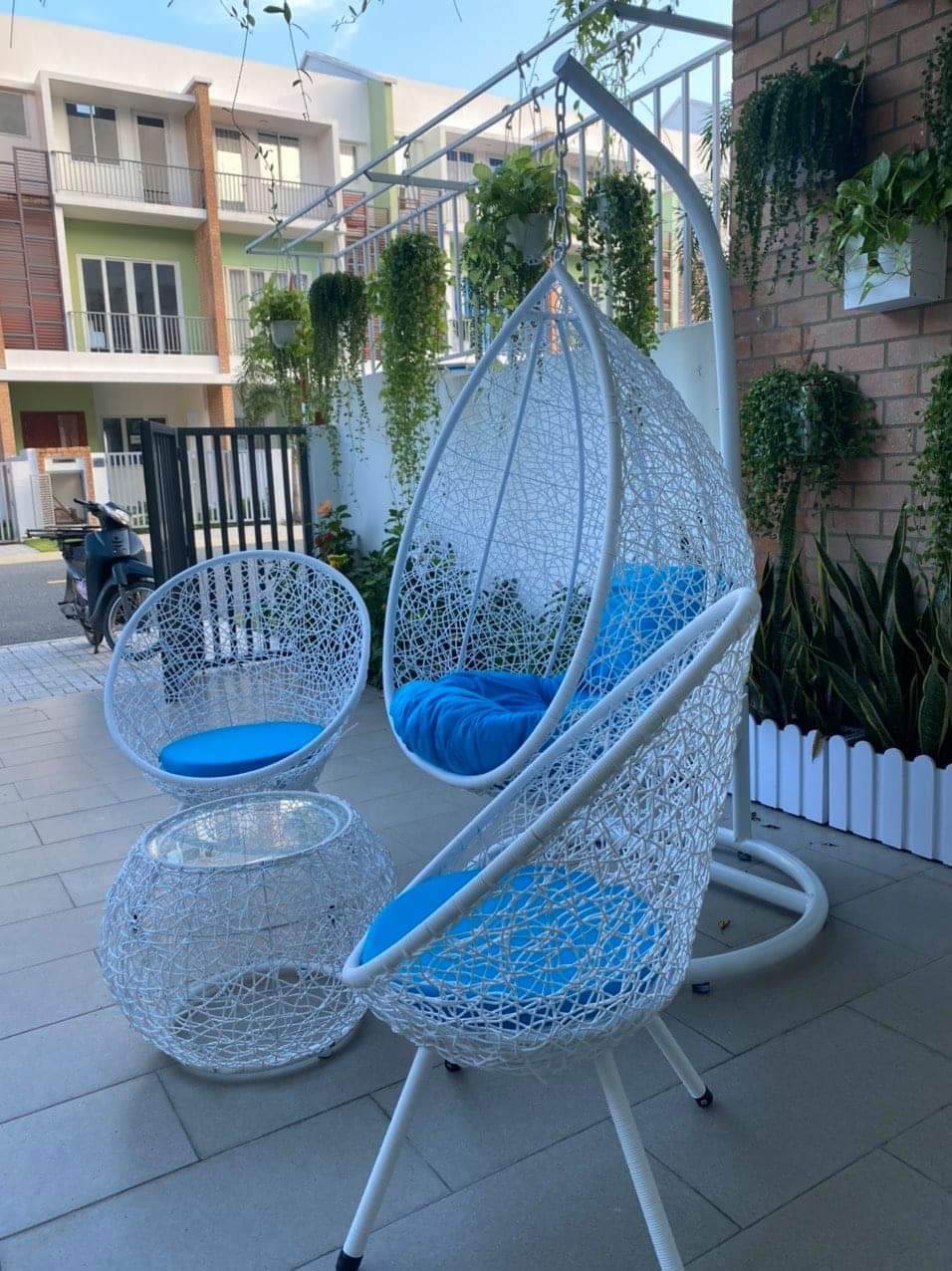 ✨Bộ xích đu sân vườn Juno Sofa bao gồm 01 xích đu đơn, 2 ghế đơn và 01 bàn tròn kính, đã bao gồm nệm ngồi.