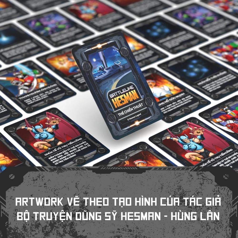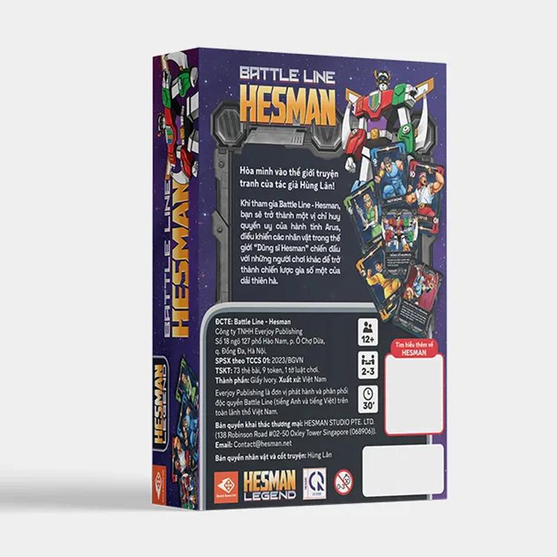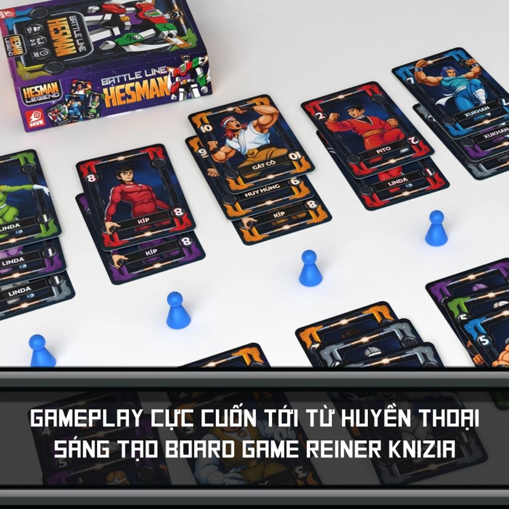 - Battle line – Hesman là board game kết hợp giữa hình ảnh của Dũng sĩ Hesman và gameplay siêu hot của Huyền thoại Board Game người Đức Reiner Knizia – Battle line.