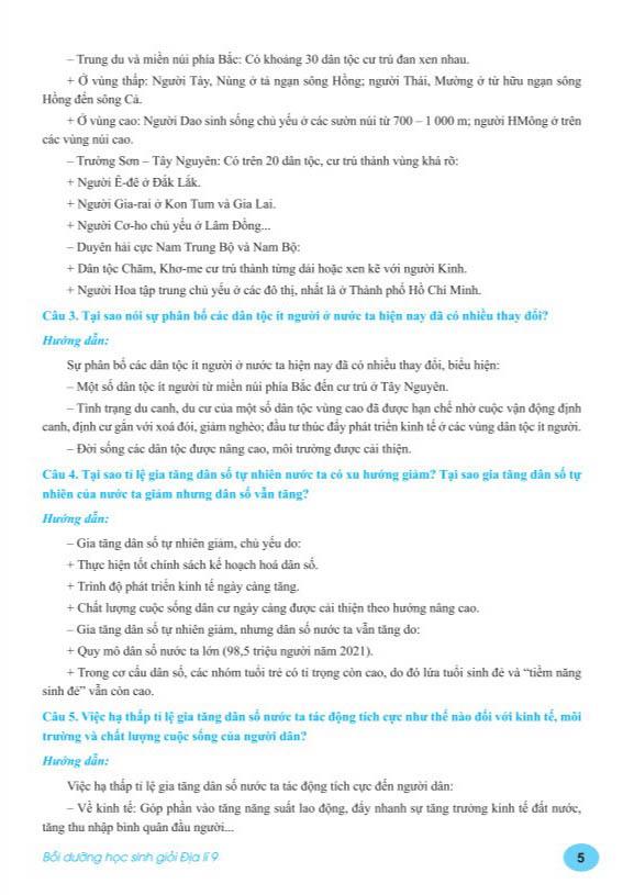 – Câu hỏi và bài tập: Gồm hệ thống đa dạng câu hỏi, bài tập phù hợp với quá trình bồi dưỡng học sinh giỏi đi từ thấp lên cao, từ đơn giản đến phức tạp. Các câu hỏi và bài tập chú trọng vào việc phát triển năng lực nhận thức thế giới theo quan điểm không gian, giải thích các hiện tượng và quá trình địa lí, sử dụng các công cụ địa lí học, vận dụng kiến thức, kĩ năng đã họ