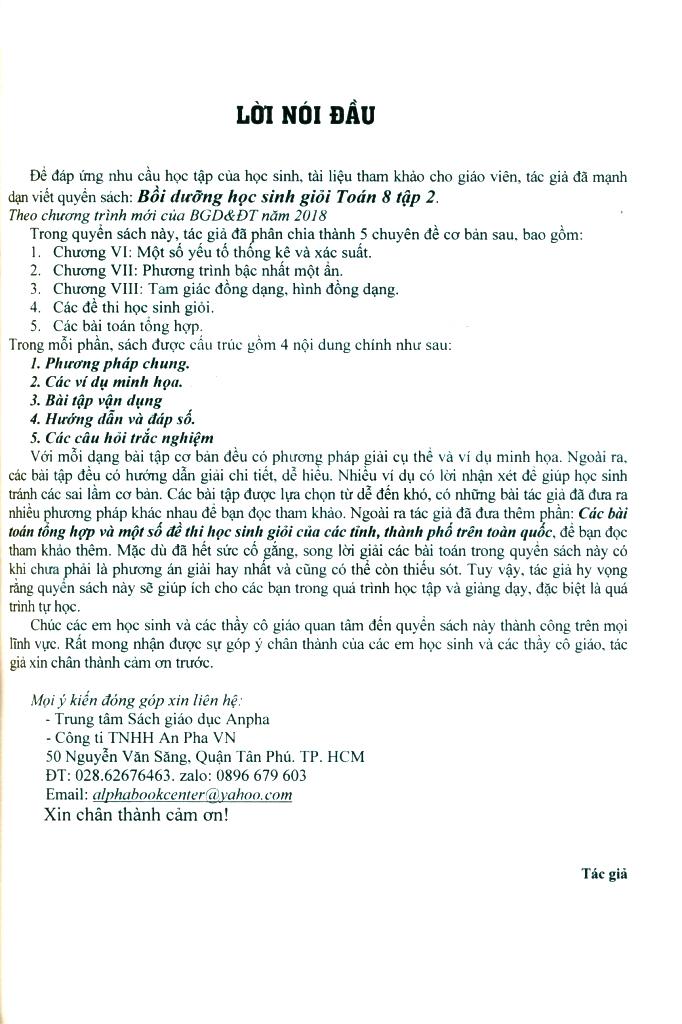 Bồi Dưỡng Học Sinh Giỏi Toán 7 - Tập 2 Nhằm giúp các em học sinh lớp 7 yêu tích toán học hơn thông qua việc giải những bài toán bằng nhiều cách khác nhau. Trong học toán và giải toán, việc tìm thêm những lời giải khác hau cho một bài tóan mang lại sự hứng thú và phát triển tư duy cho học sinh. Từ đó quyển sách được biên soạn với mong muốn giúp các em học sinh lớp 6 yêu tích toán học hơn thông qua việc giải những bài toán bằng nhiều cách khác nhau.