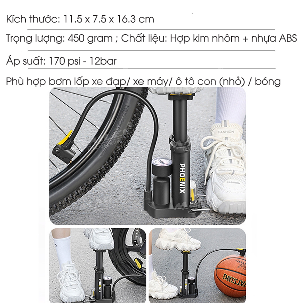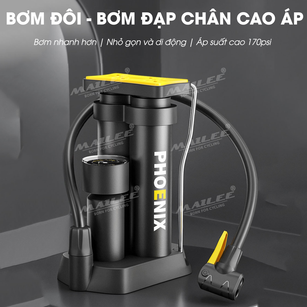 Bơm Chân Mini Di Động Phoenix 9809E cho Xe máy/ xe đạp/ xe ô tô, ống đôi, 170 psi, vỏ nhựa ABS, lõi bơm nhôm, van đa năng 2 lỗ đa dụng - Mai Lee Vui lòng xem video để hiểu tính năng của sản phẩm