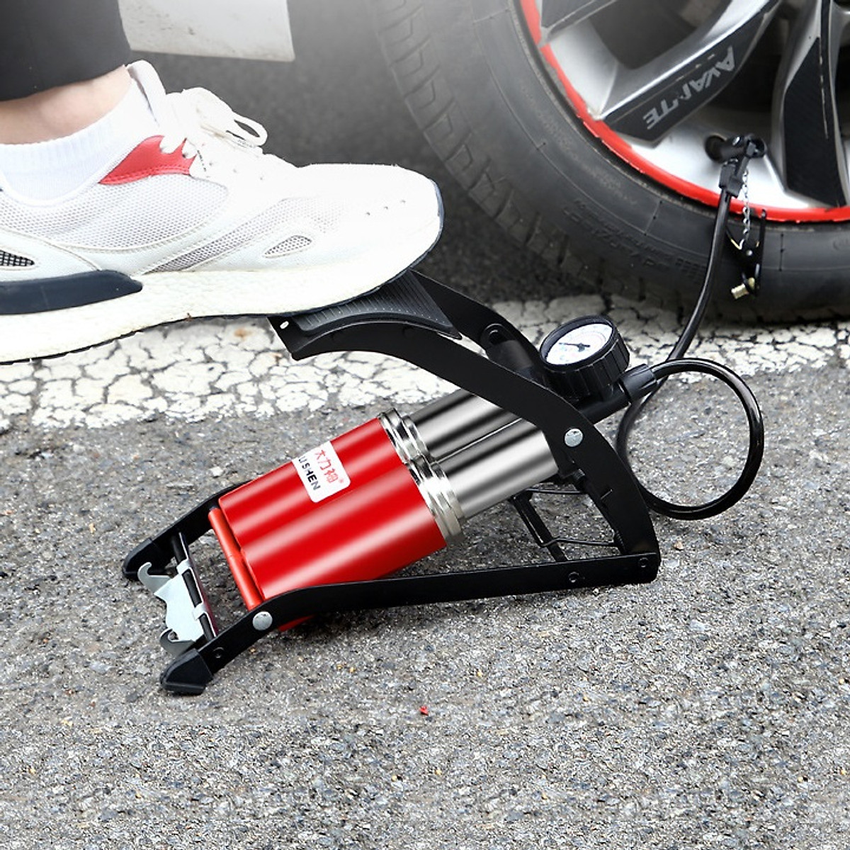 Bơm đạp chân 2 piston xi lanh cao cấp để bơm xe đạp, xe máy, ô tô, bóng, phao