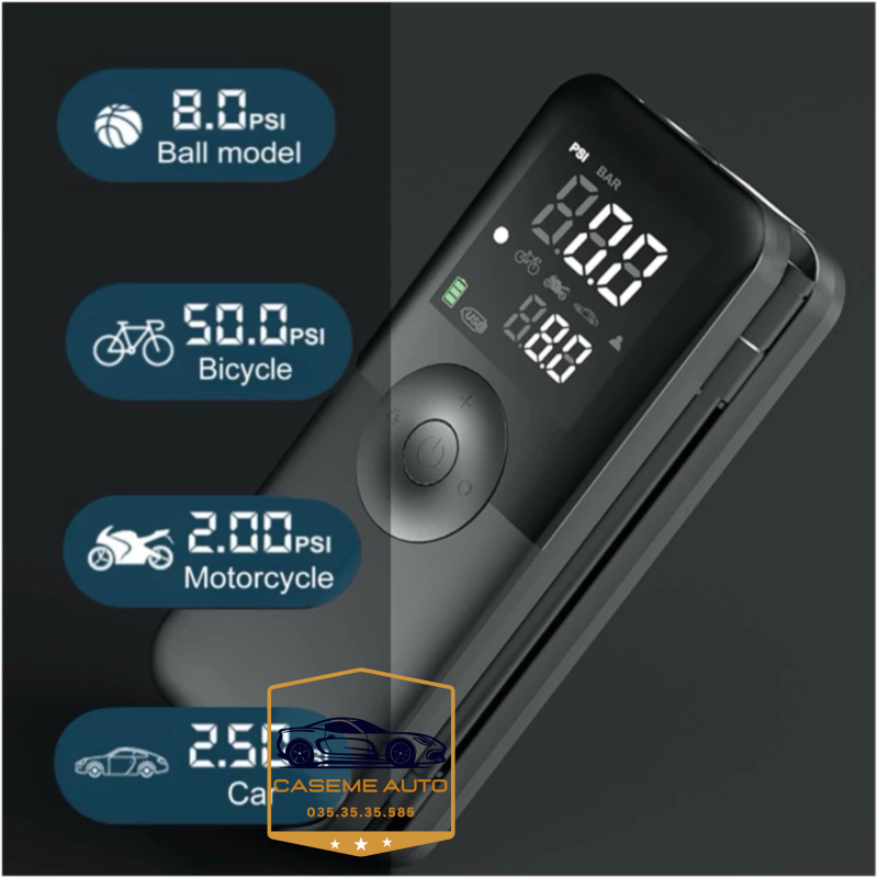 - Màn hình LED đôi hiển thị rõ ràng thông số áp suất - Cài đặt áp suất mong muốn dễ dàng, tự ngắt khi đạt mức - 4 chế độ bơm thông minh: xe hơi, xe