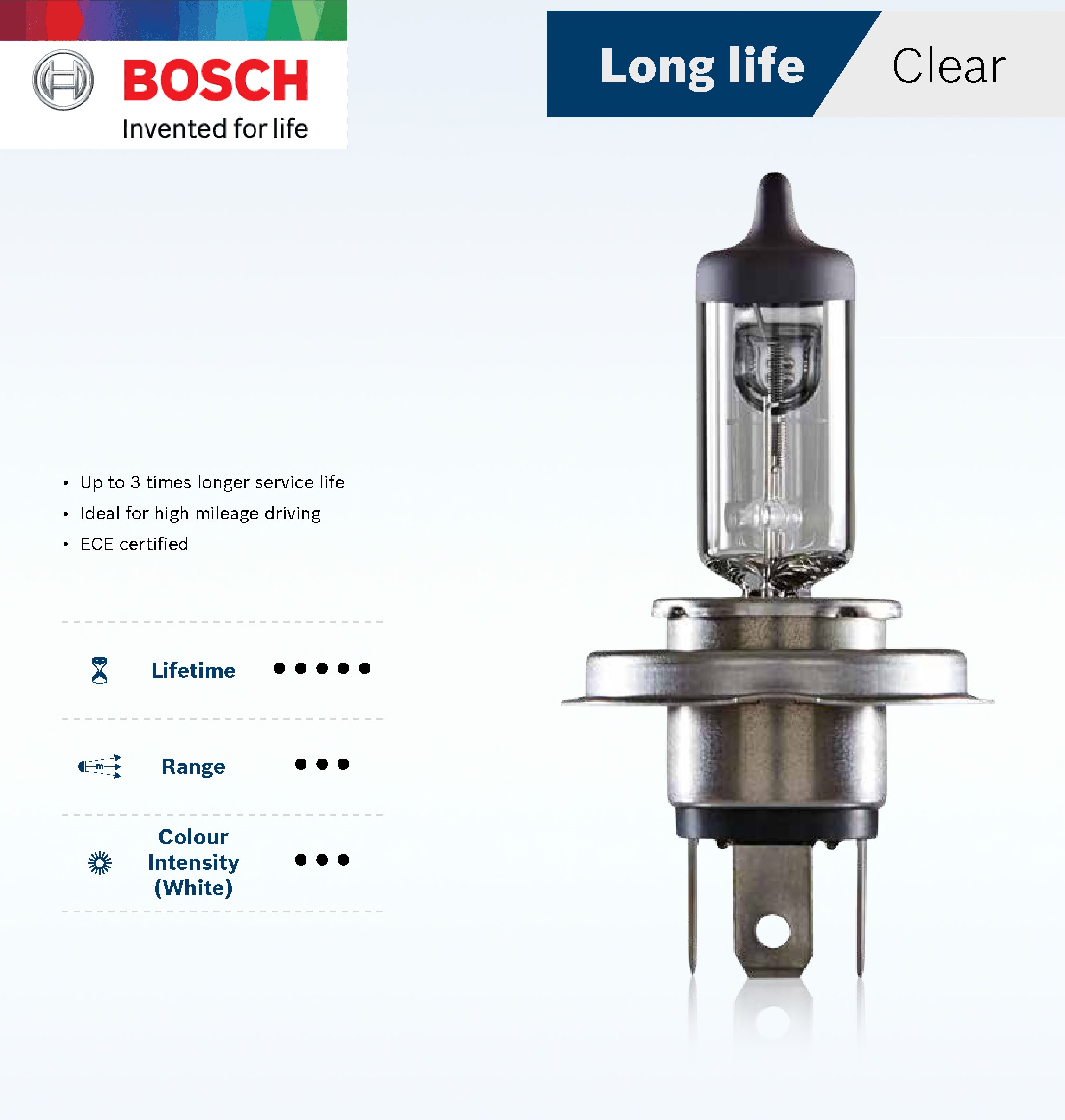 • Công nghệ chiếu sáng Bosch mang ánh sáng vượt trội trên mọi nẻo đường, cho tầm nhìn rộng hơn vào ban đêm hay cả trong những điều kiện thời tiết khắc nghiệt, đảm bảo