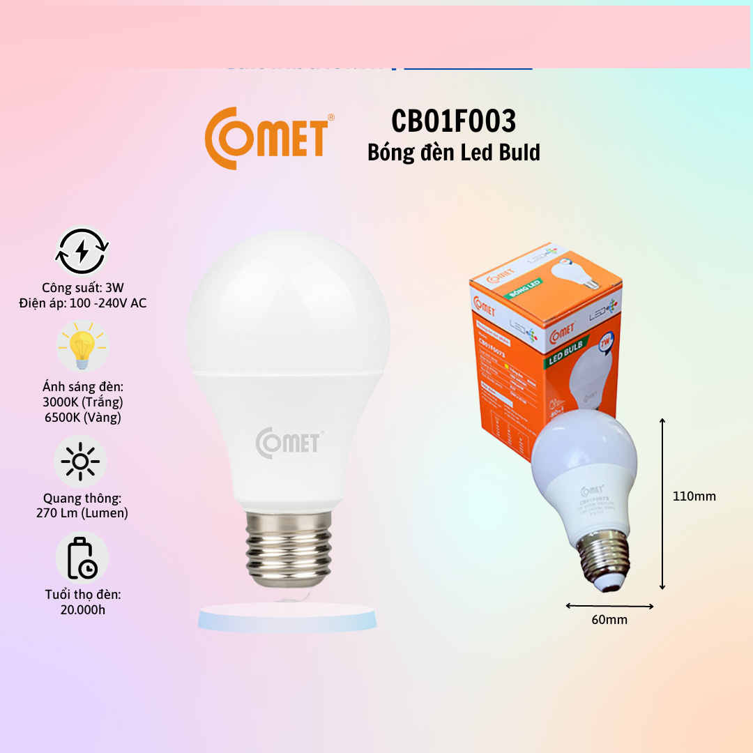 ✨Bóng đèn Led Bulb Comet CB01F công suất 3W ánh sáng trắng