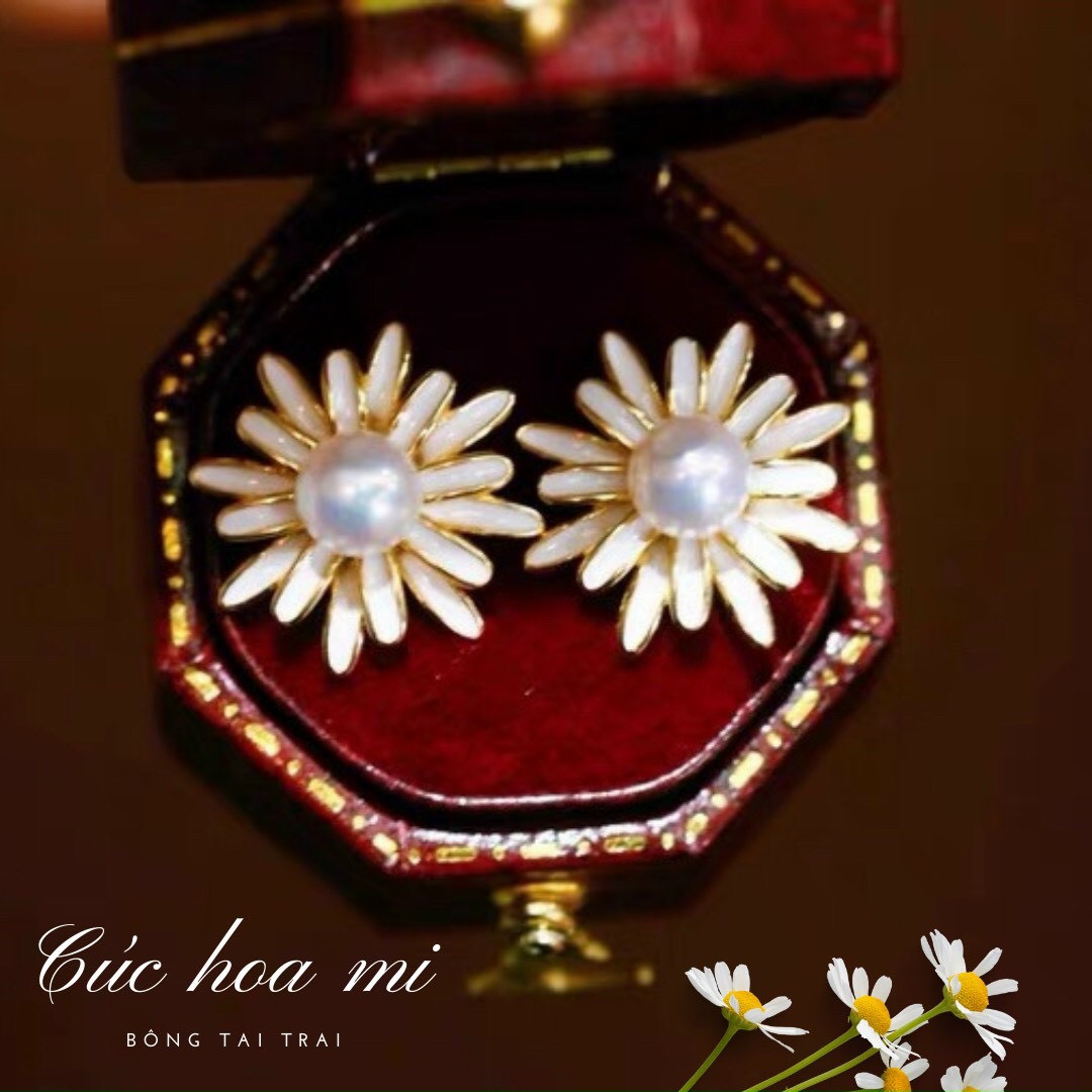 ✨Bông tai, hoa tai ngọc trai nuôi hình hoa cúc họa mi