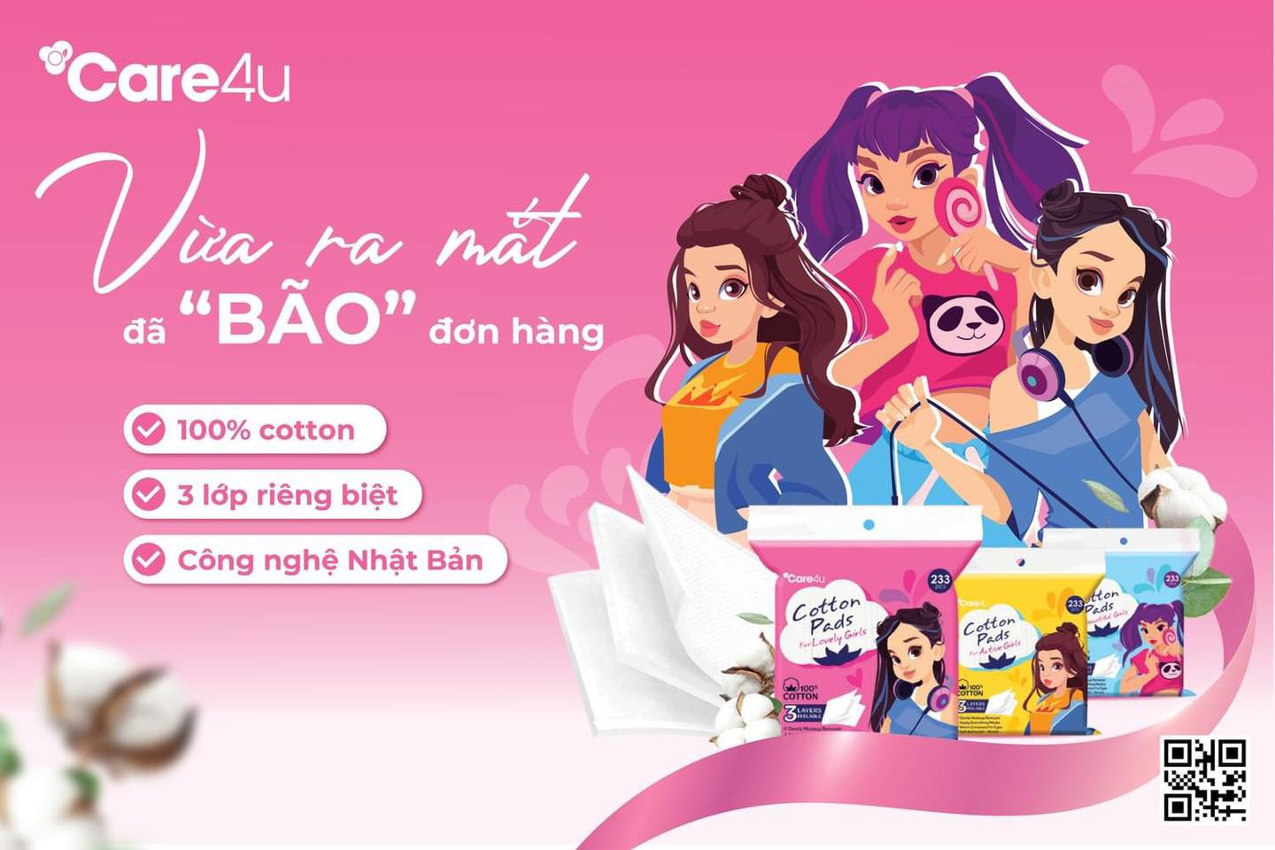 Bông tẩy trang cao cấp Care4u 3 lớp 233 miếng_CARE4165X