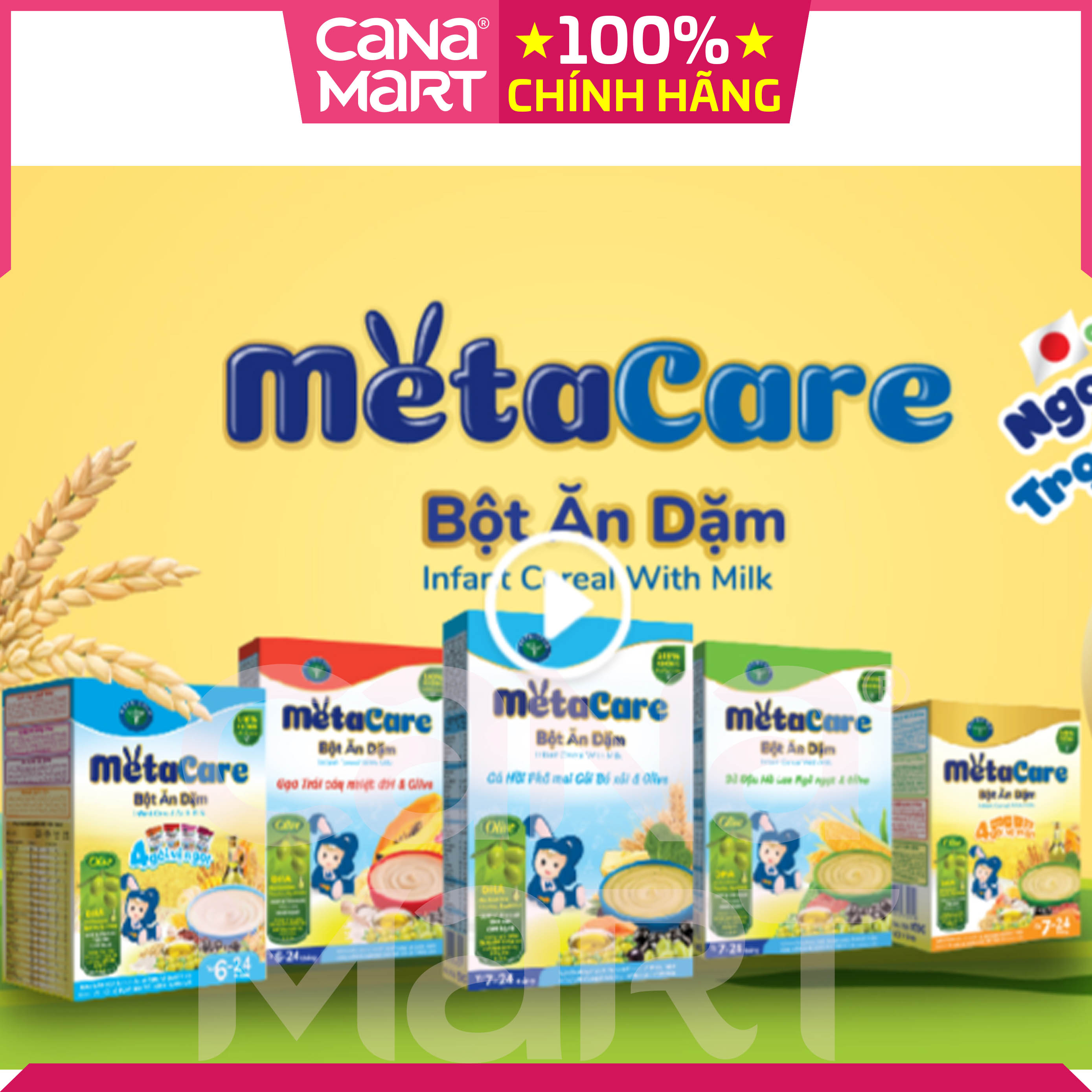 – Bột ngọt Metacare: : Bột ngũ cốc và bột sữa thích hợp cho giai đoạn mới tập ăn dặm.