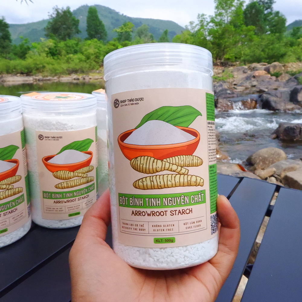 - HSD: 12 tháng từ ngày sản xuất BỘT BÌNH TINH - TINH BỘT CỦ DONG: Giới Thiệu: Để thu được tinh bột, trước hết cần thu hoạch và sơ chế củ sạch. Sau đó, củ được nghiền nhuyễn và hòa với nước sạch nhiều lần để tách tinh bột. Quá trình này được lặp lại cho đến khi tinh bột đạt độ trắng mong muốn. Cuối cùng, tinh bột được phơi hoặc sấy khô để thu được tinh bột khô. Công Dụng: Tinh bột bình tinh chứa nhiều chất xơ, giúp nhuận tràng và phòng ngừa táo bón. Hỗ trợ sức khỏe tim mạch, giảm nguy cơ tắc mạch máu và huyết áp cao. Ổn định đường huyết và thích hợp cho người tiểu đường. Là lựa chọn thay thế lúa mì cho người bị bệnh celiac. Thanh nhiệt, tăng đào thải độc tố và cung cấp folate tốt cho sự phát triển của thai nhi. Bổ sung sắt, kali, và vitamin B, tăng cường miễn dịch tự nhiên của cơ thể. Cách Sử Dụng: