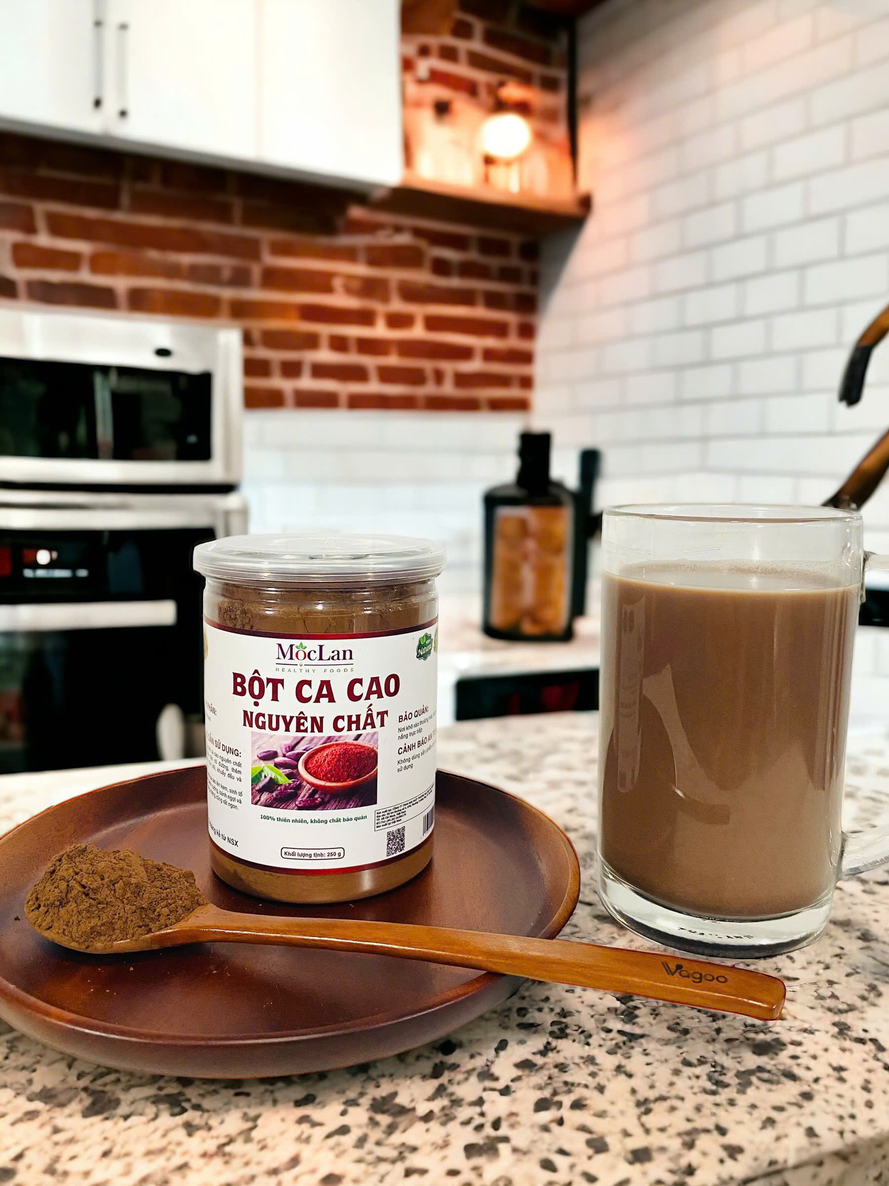 - Ngoài ra, cacao còn được sử dụng để pha chế các loại thức uống bổ dưỡng, ️HƯỚNG DẪN SỬ DỤNG: Bước 1: Đun sôi nước: Để cacao tan đều không bị vón cục, bạn hãy dùng nước nóng 70-100 độ. Bước 2: Cho bột cacao vào ly: Sử dụng khoảng 2-3 muỗng cafe bột cacao nguyên chất Bước 3: Cho sữa đặc hoặc đường: Vì cacao nguyên chất nên chưa có vị ngọt, ta thêm sữa đặc sẽ giúp hương vị tách cacao thơm ngon hơn. Lượng ngọt tùy theo khẩu vị bản thân. Bước 4: Đánh lên thật đều: Việc đánh cacao cùng sữa trước khi cho nước giúp bột tan đều hơn và không bị vón Bước 5: Chế nước nóng vào tách rồi khuấy tan hỗn hợp để bột dậy mùi thơm hơn. Đối với cacao nóng khoảng 120ml nước. Nếu uống lạnh bạn cho ít nước hơn để thưởng thức cùng đá. ️THÔNG TIN SẢN PHẨM: Thành phần: 100% cacao được lựa chọn từ vùng trồng sạch và chất lượng. Khối lượng: 250g, 500g HSD: 12 tháng kể từ ngày sản xuất. BẢO QUẢN: Nơi khô ráo, thoáng mát, tốt nhất trong ngăn mát tủ lạnh. Đậy kín bao bì sau khi sử dụng. ️MỘC LAN CAM KẾT: ️Sạch - Lành - Thuần Tự Nhiên. ️Luôn ưu tiên sản xuất sản phẩm mới nhất đến tay khách hàng. ️Đảm bảo Vệ sinh an toàn thực phẩm và có giấy chứng nhận đầy đủ. ️Chuyên cung cấp các sản phẩm sạch, thuần tự nhiên và tốt cho sức khỏe. 3 KHÔNG:
