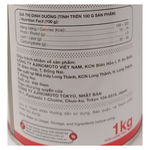- Thành phần: Muối, đường, bột thịt gà 8%, tinh bột khoai mì, mỡ gà, chất chiết nấm men, bột gia vị, hương giống tự nhiên( hương gà, hương rau củ), chất điều vị( 621, 631, 627). Thông tin sản phẩm