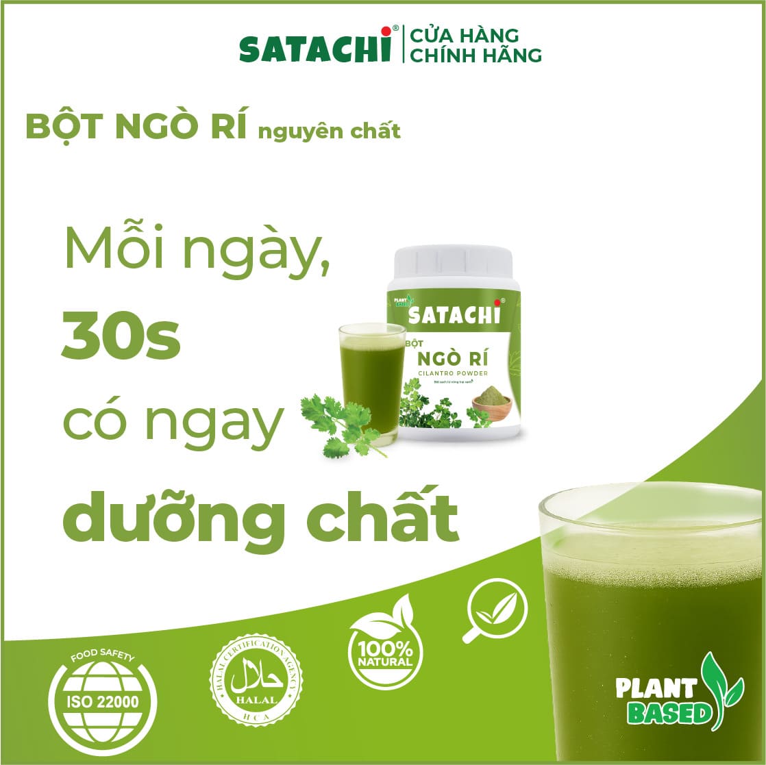 Khách hàng luôn nhận được Sản Phẩm có Ngày Sản Xuất trong vòng 6 tháng tính từ ngày sản xuất. Bột Ngò Rí nguyên ch ất SATACHI là dòng Sản Phẩm Thuần Thực Vật có nguồn dinh dưỡng dồi dào. Bột Ngò Rí nguyên ch ất SATACHI đạt: