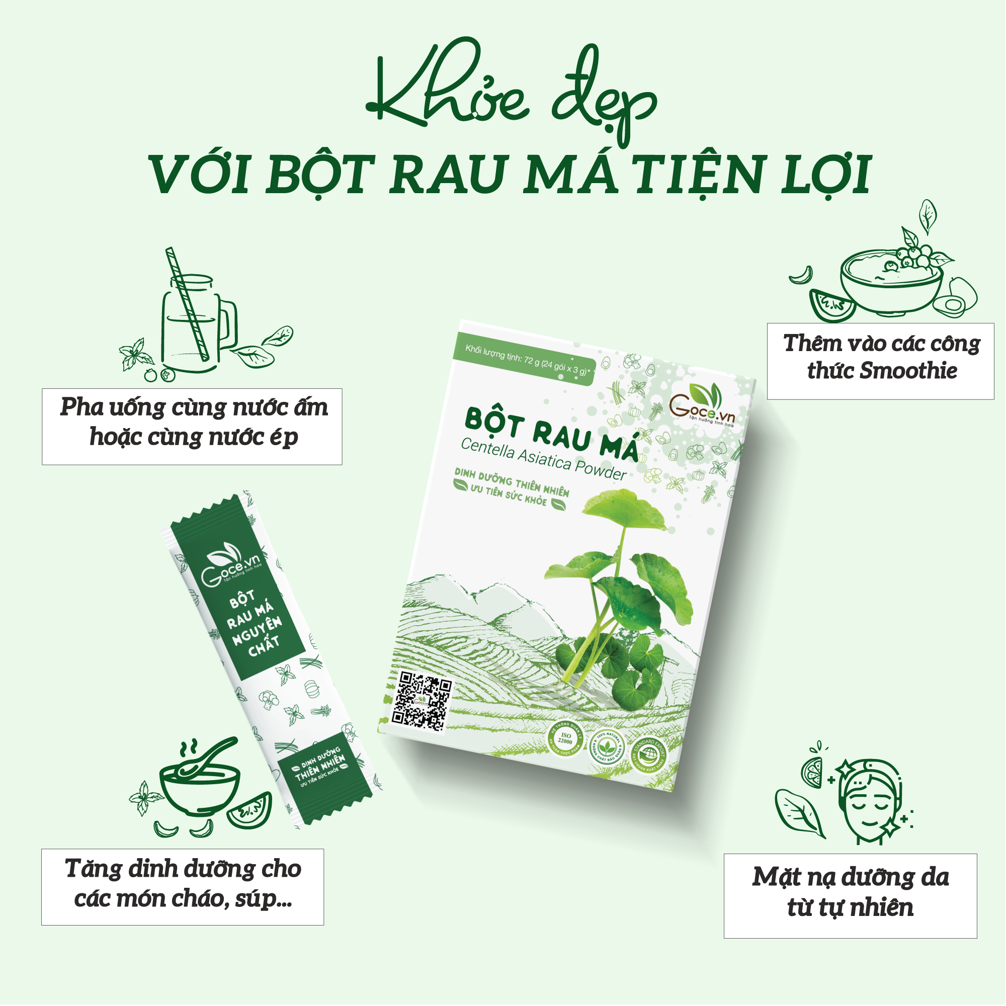 ✨Bột rau má nguyên chất Goce - 72g (24 gói x 3g)