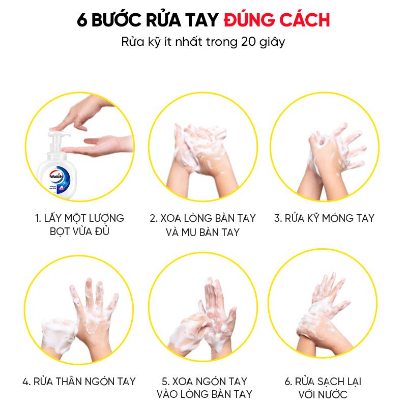 Công dụng: Sử dụng Bọt rửa tay Walch hàng ngày để bảo vệ bàn tay khỏi vi khuẩn và giúp giữ vệ sinh sạch sẽ. Với công thức dịu nhẹ sẽ giúp làn da của