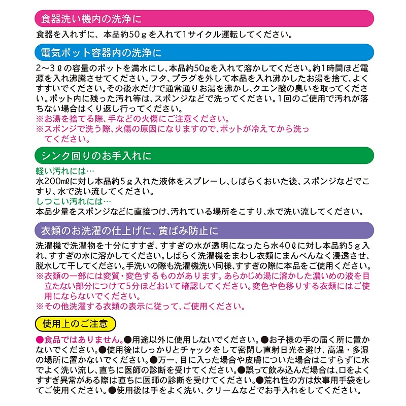 Bột tẩy đa năng Axit Citric 600g ■ Xuất xứ: Nhật Bản | MADE IN JAPAN ■ NSX: Kiyo Jochugiku Co., Ltd (Japan) ■ Model: K-2045 ■ Kích thước: W235×D143×H70mm ■ Màu sắc: Màu xanh ■ Chất liệu: -
