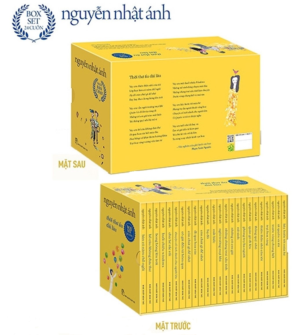 Bộ sách sẽ được phát hành ngày 5/6 dưới dạng boxset với hai phiên bản. Phiên bản hộp màu xanh ngọc có khổ 13x20 cm, bìa sách thiết kế theo xu hướng hiện đại. Phiên bản màu vàng gợi nhớ những tác phẩm xuất bản trước đây của Nguyễn Nhật Ánh, khổ sách bỏ túi 10x14,5 cm.