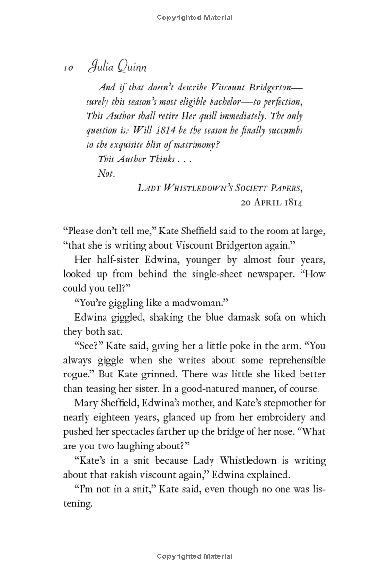 1814 promises to be another eventful season, but not, This Author believes, for Anthony Bridgerton, London's most elusive bachelor, who has shown no indication that he plans to marry. And in all truth, why should he? When it comes to playing the consummate rake, nobody does it Lady Whistledown's Society Papers, April 1814