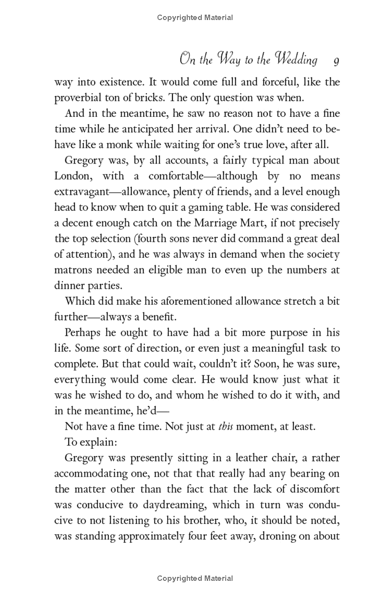 Lucy is engaged. And her uncle is not inclined to let her back out of the betrothal, even once Gregory comes to his senses and realizes that it is Lucy, with her sharp wit and sunny smile, who makes his heart sing. And now, on the way to the wedding, Gregory must risk everything to that when it comes time to kiss the bride, he is the only man standing at the altar …
