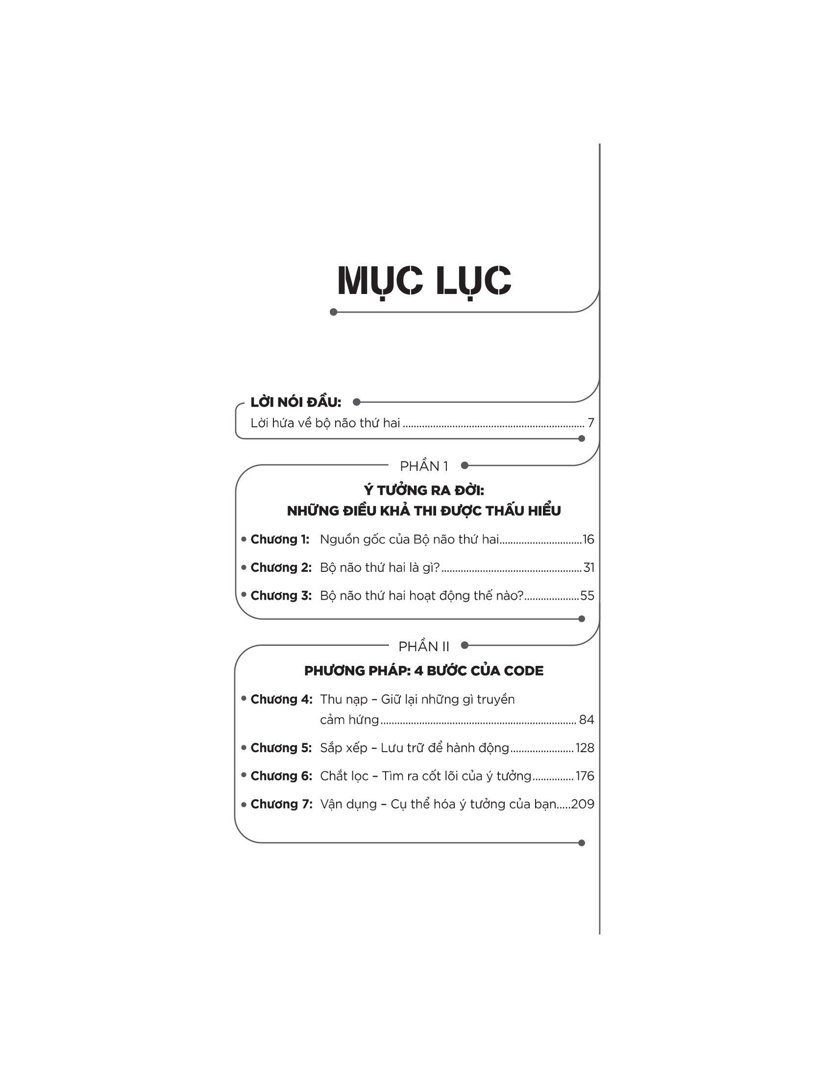 Cuốn sách Buiding a Second Brain - Thiết lập bộ não thứ hai làmột cách tiếp cận mang tính cách mạng, một bản hướng dẫn, chỉ ra các phương pháp để bạn có thể dễ dàng tạo hệ thống dữ liệu công việc cá nhân để quản lý kiến thức. Hệ thống này chính là kho lưu trữ kỹ thuật số có tổ chức và đáng tin cậy, chứa các ý tưởng, ghi chú sáng tạo có giá trị nhất, được đồng bộ hóa trên tất cả các thiết bị và nền tảng của bạn. Bộ não thứ hai mang đến cho bạn sự tự tin để giải quyết các dự án quan trọng nhất và các mục tiêu đầy tham vọng của m.ình.