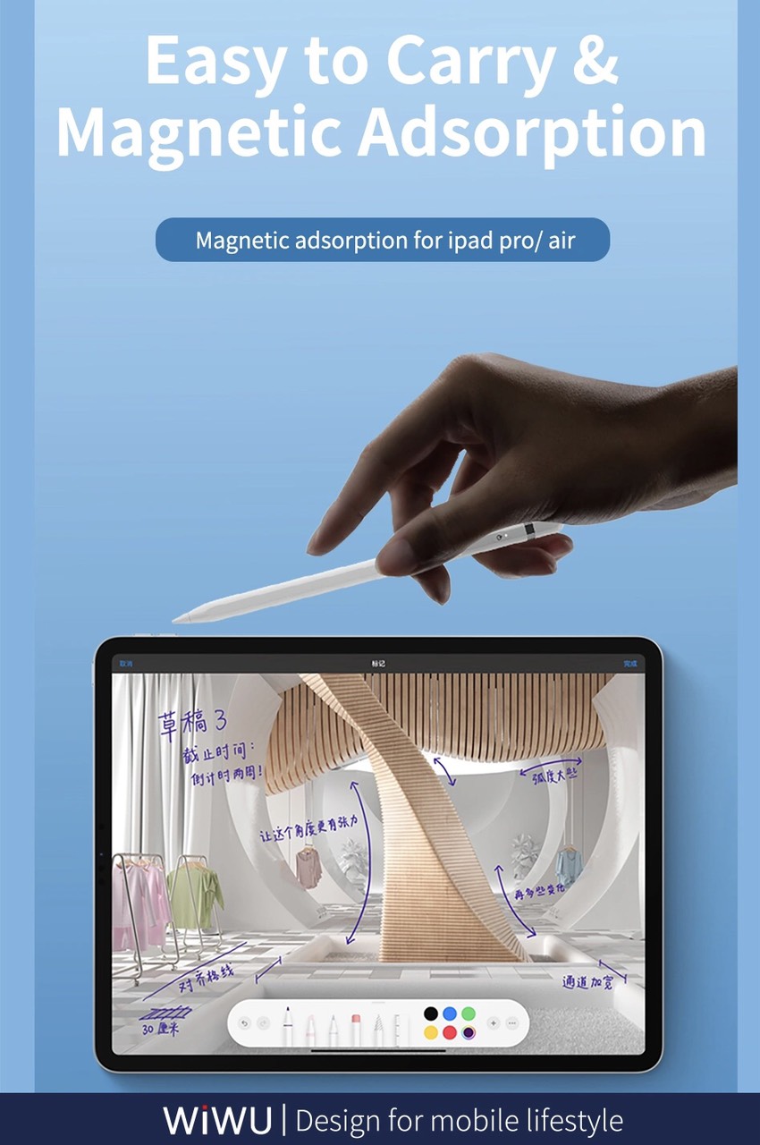 Bút Cảm Ứng Wiwu Pencil W Dành Cho iPad Pro và các dòng iPad / iPad Mini Sạc Không Dây Từ Tính Mô tả sản phẩm - Thương Hiệu : WIWU - Chất liệu: Hợp