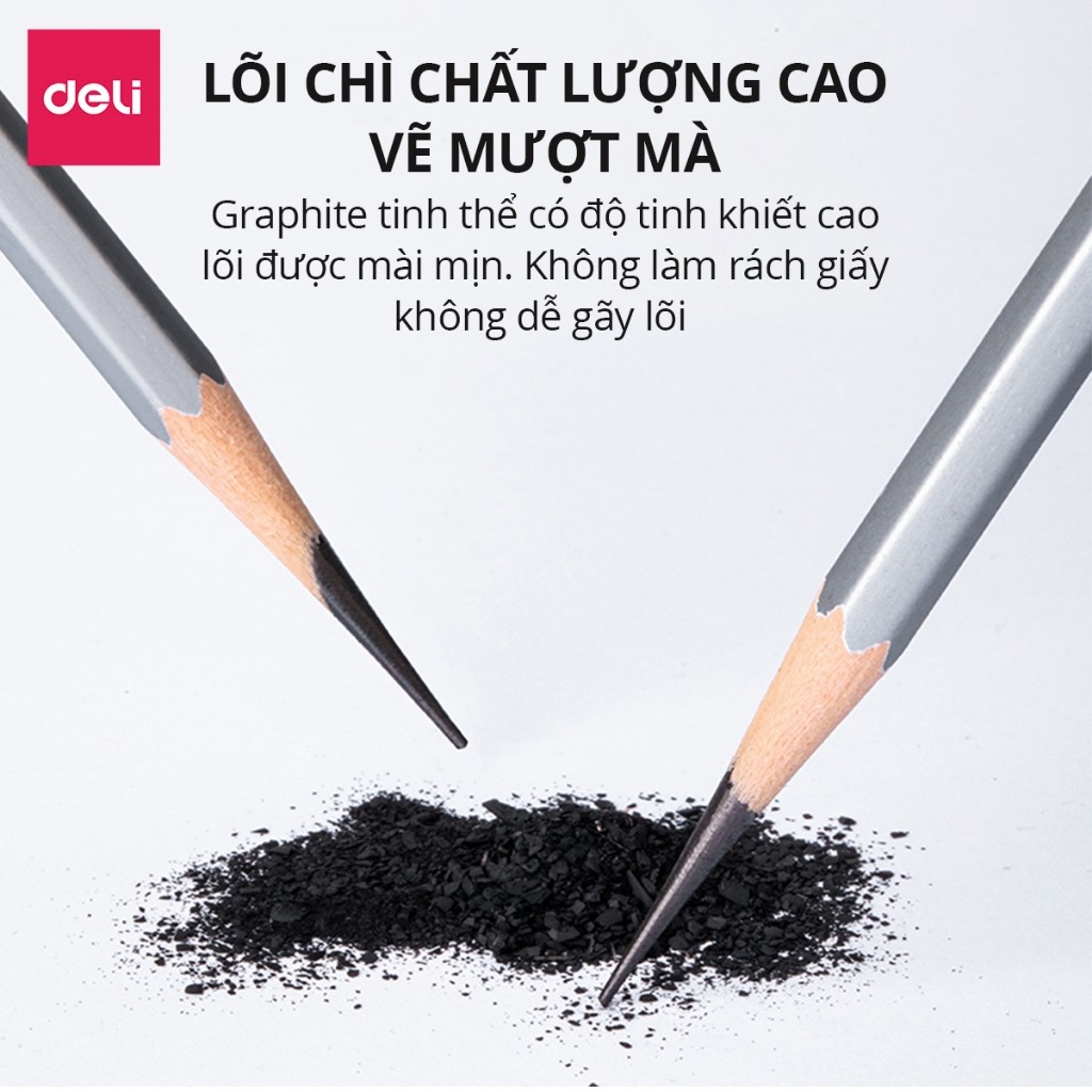 - Bút chì Deli - Viết chì là một vật dụng không thể thiếu đối với các bạn học sinh và giới văn phòng. - Chất liệu gỗ trầm mềm, giúp việc gọt bút trở