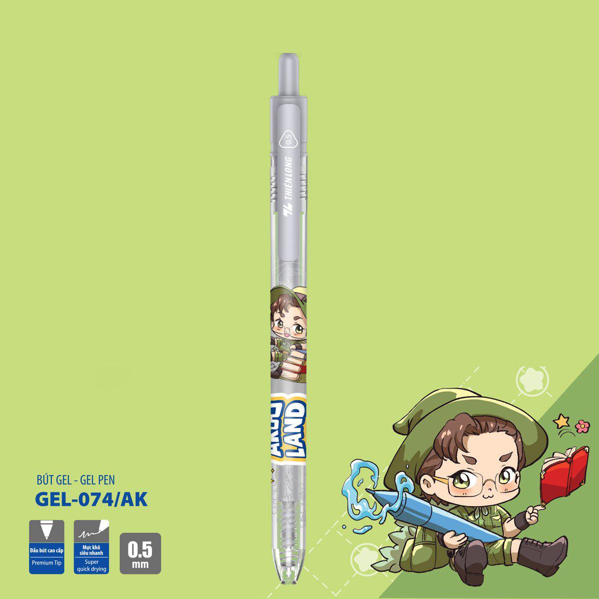 Bút Gel 0.5 mm - Nhân Vật Akooland Tahi - Thiên Long - GEL-074/AK - Mực Xanh - Được làm từ chất liệu mực cao cấp, màu sắc bền, khó phai theo thời gian. -