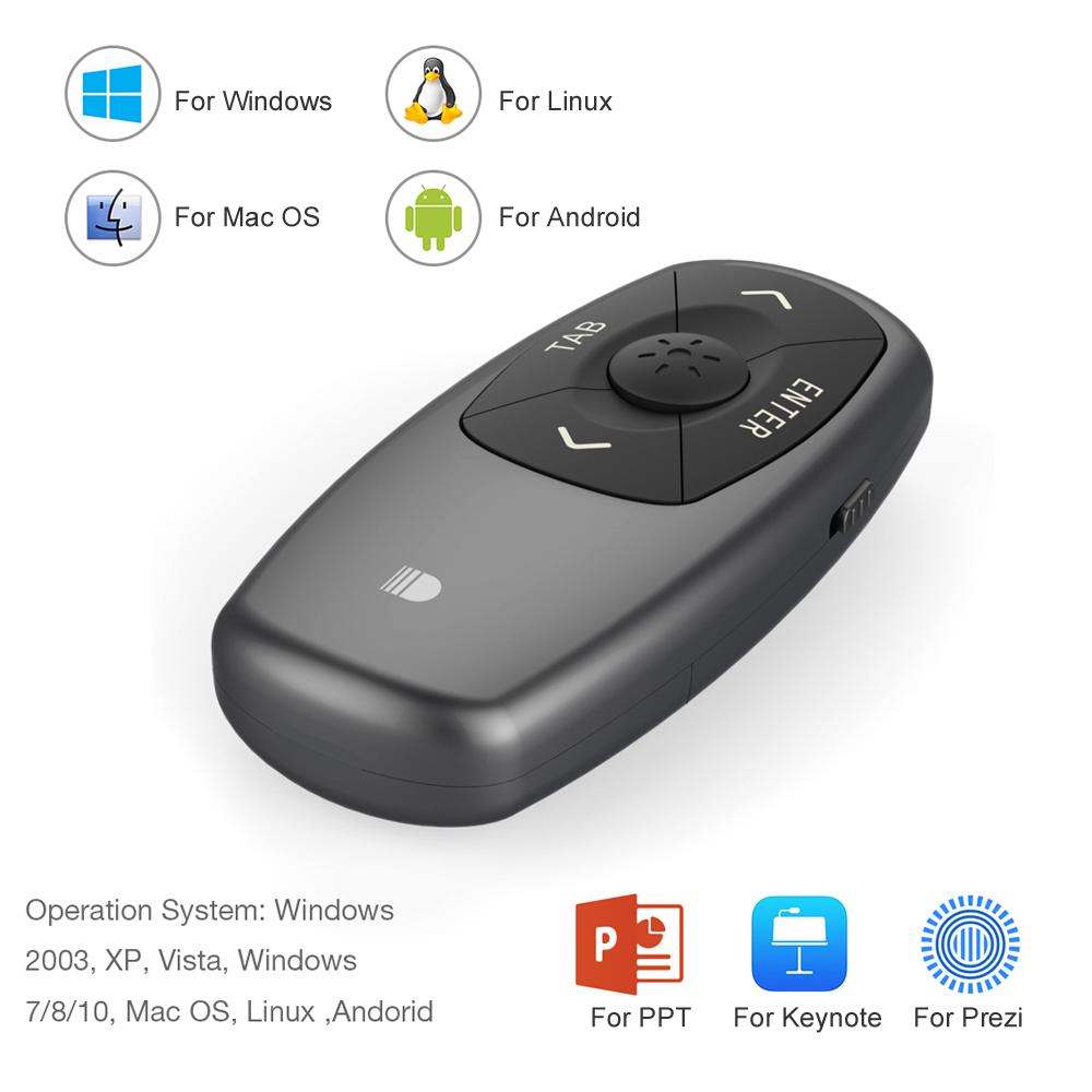 Can use it plug and play, no driver needed. The USB receiver is located at the back of the Presenter. Design with a compact size, easy to use and carry everywhere.