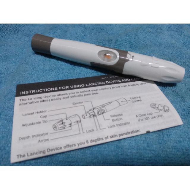- Có núm điều chỉnh độ nông, sâu của kim chích máu phù hợp với da dày, da mỏng.