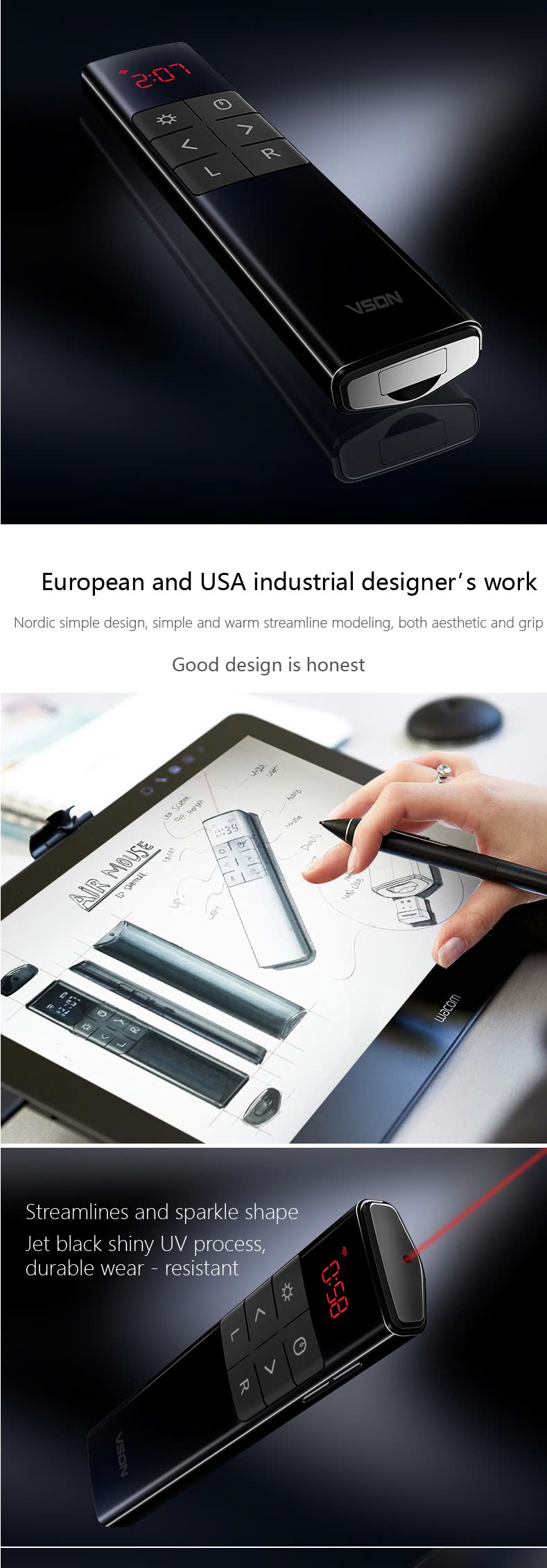 Bút Trình Chiếu Kỹ Thuật Số VSON N39M – Tích Hợp Laser, Bluetooth & USB, tia kỹ thuật số có thể sử dụng được màn chiếu, tivi, bảng tương tác Mô tả sản phẩm: -