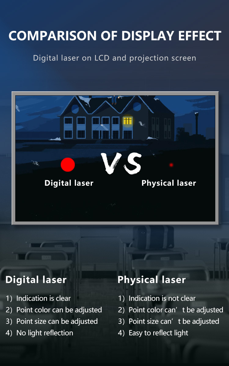 Laser xanh: Người dẫn chương trình không dây với tia laser màu xanh lá cây hiển thị tốt hơn trên nhiều nền khác nhau, ánh sáng xanh lục tươi sáng giúp bạn chỉ rõ mọi thứ
