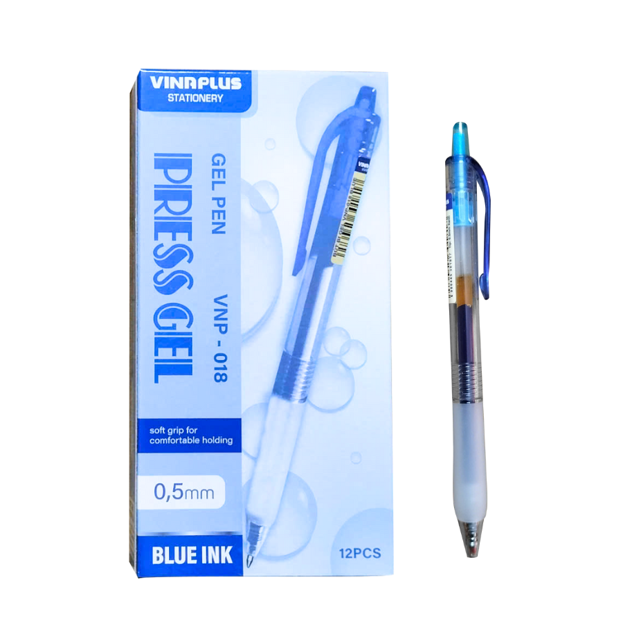 Mua tại TiktokBút Viết Gel Nước Dạng Bấm Vinaplus VNP-018 Ngòi 0.5mm (Mực Xanh, Đen), Viết Êm, Mực Đều