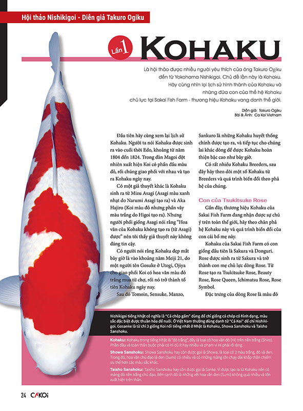 “CÁ KOI” là phiên bản tiếng Việt của Gekkan Nishikigoi (Koi Magazine do Shinkokai Nhật Bản phát hành), được phát hành hàng quý tại Việt Nam. Có trong tay quyển “CÁ KOI” nghĩa là có