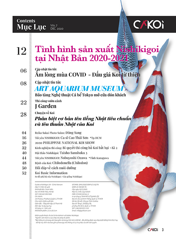 Cá Koi Vietnam – Guide to Nishikigoi life, Tập 13 (số ra 07/2022) có những nội dung như sau: - The 38th All Japan Young Koi Show - Cá Koi thời đại mới - The