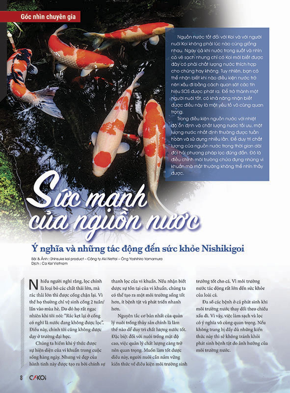 “Cá Koi Vietnam – Guide to Nishikigoi Life” là phiên bản tiếng Việt của Gekkan Nishikigoi (Koi Magazine do Shinkokai Nhật Bản phát hành), phát hành hàng Quý tại Việt Nam. Có trong tay quyển