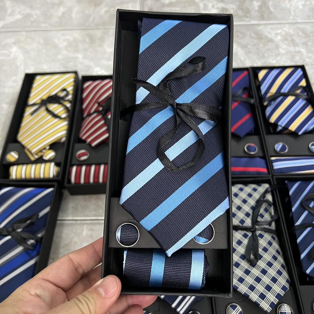Cavat nam bản 8cm lót silk cao cấp nguyên hộp kèm khăn và khuy măng sét Giangpkc Qtp Sản phẩm cao cấp nguyên hộp quà tặng bản 8cm thích hợp cho trung niên - công