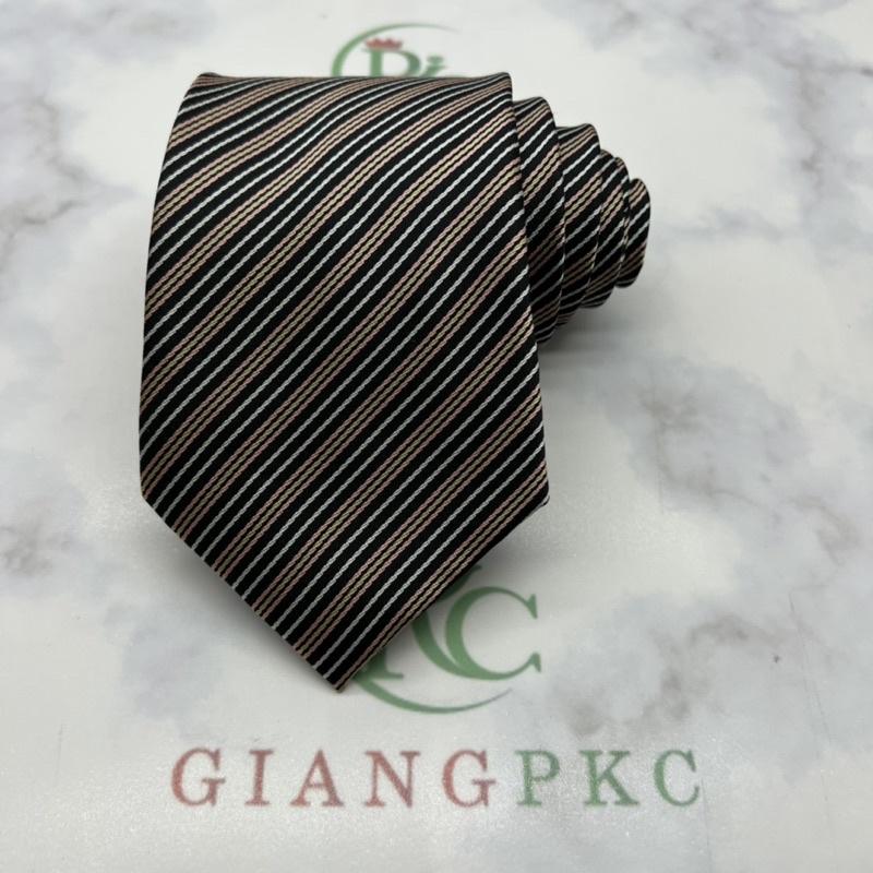 Cà vạt nam trung tuổi bản 8cm tự thắt nâu kẻ lịch lãm Giangpkc chất liệu sp : dệt kim 3 lớp dầy kích cỡ 145 cm x8cm dùng cho người trung tuổi công dụng - dùng đeo cổ - quà tặng