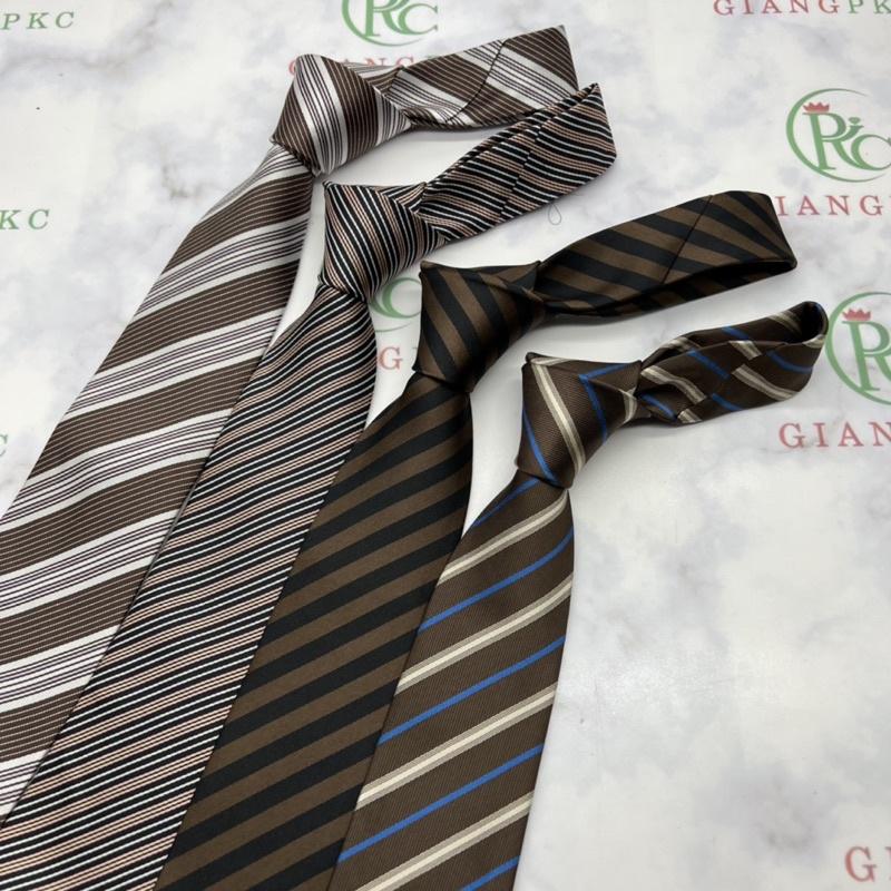 Cà vạt nam trung tuổi bản 8cm tự thắt nâu kẻ lịch lãm Giangpkc chất liệu sp : dệt kim 3 lớp dầy kích cỡ 145 cm x8cm dùng cho người trung tuổi công dụng